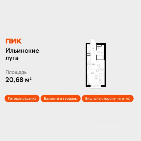 Продаётся квартира-студия площадью 20 кв.м на 9 этаже 9 этажного дома (Корпус 3.5, Секция 5) проекта ПИК Ильинские луга. Светлый просторный подъезд на уровне земли, функциональная планировка, большие окна, c отделкой. Жилой район "Ильинские луга" находится в 10 километрах от МКАД по Новорижскому шоссе, в 20 минутах на автомобиле от станций метро "Волоколамская", "Тушинская" и "Строгино". В будущем ближе к проекту, в 9 минутах пути на машине, откроется станция "Ильинская" Рублёво-Архангельской линии, которая будет соединять Арбатско-Покровскую линию и Большую кольцевую линию. Сейчас в квартале начались продажи в корпусах 3.2, 3.3, 3.4, 3.5 и 3.6. "Ильинские луга" — масштабный проект, в который входит девять детских садов, четыре школы и поликлиника. Он строится в престижном и экологичном районе среди лесов и памятников природы. За 5 минут от жилого квартала можно доехать до Рублёво-Успенского шоссе, а за 30 минут — до центра Москвы. До крупного торгового центра "РИГАМОЛЛ" всего 5 минут на автомобиле, а до ТЦ "Твой дом" и гипермаркета "Глобус" — 10 минут. В "Ильинских лугах" строятся только девятиэтажные дома — такая архитектура соответствует спокойной жизни за городом. В каждом дворе-парке есть места для отдыха, детские и спортивные площадки. А ещё, здесь уже открыт большой PlayHub "Гравити" — современное игровое пространство с космической тематикой, холмами, зонами для игр и отдыха жителей любого возраста. На первых этажах уже работают магазины, кафе и пекарни. Места для отдыха от "Ильинских лугов" тоже недалеко: 10 минут на машине — и вы в музее-усадьбе "Архангельское". Также рядом находится Лохин остров — памятник природы, где водятся речные черепахи, есть места для кемпинга и возможность сплавиться по реке. Артикул 1002029 (Застройщик ООО "СЗ "ГРАДОЛИМП")