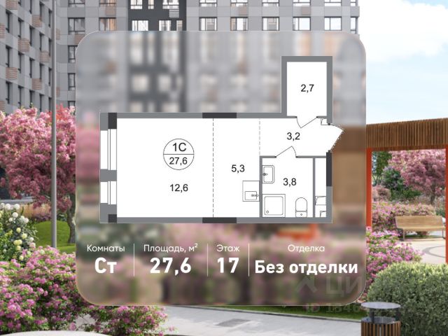 Продается квартира-студия в городе-парке "Переделкино Ближнее". Общая площадь квартиры - 26,5 кв. м, этаж 6 из 17. Срок сдачи - 3 квартал 2028 года. Тип дома - монолитный. ТОЛЬКО ДО 31 МАРТА выгодные условия на приобретение квартиры в ипотеку или рассрочку. Звоните - и мы подберем оптимальное предложение под ваш запрос! Корпус расположен в 13 фазе строительства и состоит из 6 секций с переменной этажностью 12-17 этажей. Около 13 фазы запланировано строительство многоуровневого паркинга на 300 м/мест. 13 фаза имеет уникальное расположение и находится непосредственно на берегу Федосьинского пруда, который является сердцем города-парка "Переделкино Ближнее". Город-парк "Переделкино Ближнее" расположен в 8 км от МКАД по Боровскому шоссе. ТРАНСПОРТНАЯ ДОСТУПНОСТЬ: - 15 минут пешком до станции МЦД-4 "Мичуринец" - 25 минут пешком до станции метро "Рассказовка" Солнцевской линии - 30 минут до центра Москвы - 2026 г. - открытие трассы Солнцево-Бутово-Варшавское шоссе РАЗВИТАЯ СОЦИАЛЬНАЯ ИНФРАСТРУКТУРА: - 7 детских садов, 3 школы - банки, продуктовые магазины, аптеки, фитнес центры, салоны красоты и пр БЛАГОУСТРОЙСТВО: - дворы без машин - игровые зоны и развивающие детские площадки - зоны для созерцательного и медитативного отдыха - зоны для занятий спортом ОСОБЕННОСТИ АРХИТЕКТУРЫ: - высокие потолки от 3,03 м - безбарьерные входные группы - колясочные в каждой входной группе - кладовые помещения расположены на -1 этаже каждой секции - в каждой секции 2 лифта: 1 пассажирский, 1 грузовой - на фасаде предусмотрены корзины для установки кондиционеров АВТОРСКИЙ ДИЗАЙН: Входные группы выполнены по авторскому дизайну, благодаря панорамному остеклению наполнены естественным светом. В каждой входной группе будет располагаться комфортабельная зона ожидания с возможностью зарядить электронные устройства, почтовые ящики, колясочная, акцентные пуфы и столик.