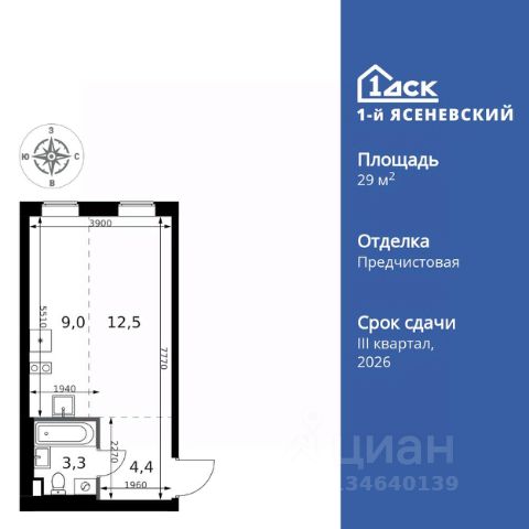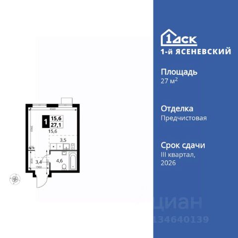 Прямая продажа от застройщика! Жилой Комплекс класса Комфорт Плюс. Продаётся квартира-студия номер 355 общей площадью 20.9 кв.м. на 5-м этаже 9 этажного здания. Предчистовая отделка. Цена с учётом скидки. Особенности квартиры: - Квартиры рядом с метро - м. Корниловская 9 мин пешком - 63 га лесопарка за окнами - Школа c ИТ-кластером и бассейном. 2 детских сада - Организуем показ в удобное для вас время! - Линейная планировка - максимальная функциональность и удобство. - Балкон - открытое пространство для отдыха. Квартира с предчистовой отделкой. Вам не придется заниматься черновыми и трудоёмкими работы, а чистовую отделку и дизайн - сделайте на свой вкус. Информация о комплексе: ЖК "1-й Ясеневский": преимущества городской инфраструктуры и природы. Пешая доступность к метро, школе с бассейном и ИТ-кластеру, а также 63 га Троицкого лесопарка под окнами. Закрытая территория с бульварами, велодорожками, кафе и дворами без машин. Фруктовые деревья и городские сады создают уникальную атмосферу. Всего в 1 км от МКАД - идеальный баланс для современной жизни. Транспортная доступность: До метро "Корниловская" - 12 минут пешком До метро "Тютчевская" - 25 минут пешком До метро "Теплый стан" - 10 минут на транспорте До метро "Ольховая" - 30 минут на общественном транспорте Личный автотранспорт: Выезд на Калужское шоссе - 500 м МКАД - 1 км Внутренняя инфраструктура: ЖК "1-й Ясеневский" - идеальное место для семей с детьми. Рядом Троицкий лесопарк для прогулок, а во дворах - современные детские площадки, разработанные с участием психологов. В шаговой доступности два детских сада и школа на 1100 мест с ИТ-кластером, бассейном и классами робототехники. Всё для счастливого детства и успешного будущего. Квартира с предчистовой отделкой - ваш дизайн без черновых работ