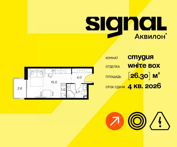 Продажа от застройщика. Продается уютная студия на 11 этаже 23-этажного современного апарт-комплекса Signal. Срок сдачи: 4 кв. 2026 г. Отделка: Апартаменты передаются в предчистовой отделке white box. Возможен заказ чистовой отделки. Мы выполним все инженерные и черновые отделочные работы, оставив вам самое приятное - создание индивидуального интерьера и неповторимого уюта. А если отпраздновать новоселье хочется как можно скорее, вы сможете заказать чистовую отделку в одном из двух цветовых вариантов: Beigestone или Greystone. Вам останется только завезти мебель и начать наслаждаться жизнью в SIGNAL. Расположение: ЖК Signal расположен на перекрестке столичных маршрутов. По Сигнальному проезду легко выехать на Алтуфьевское шоссе, СВХ и проспект Мира. Транспортная доступность: - 3 минуты пешком до станции Владыкино - 15 минут на автомобиле до ТТК - Ботанический сад в 10 минутах ходьбы Внутренняя инфраструктура Signal: - Фитнес-центр на первом этаже - Игровая площадка и приватном дворе - Коворкинг и уединенные зоны для работы - Торговая галерея Преимущества: - SoundStop - Система защиты от шума, дополнительная шумоизоляция - Система умного дома InHome 3.0 - управление домом нажатием нескольких кнопок - Система Termo-S, позволяющая сэкономить на оплате теплоснабжения - Фитнес-зал позовлит поддерживать себя в форме - Лаунж-зоны, где можно расслабиться - Лобби-бар с большим выбором напитков и закусок - Гостиничный сервис и консьерж reception 24/7 для решения бытовых задач - Апартаменты обслуживает профессиональная управляющая компания - Арт-объекты во дворах для стильного контента Signal - это дом, - чья молодость духа и бодрый настрой заряжают всех, независимо от возраста - который задает абициозную планку с самого начала карьеры - где живут интересные события и встречаются хорошие люди