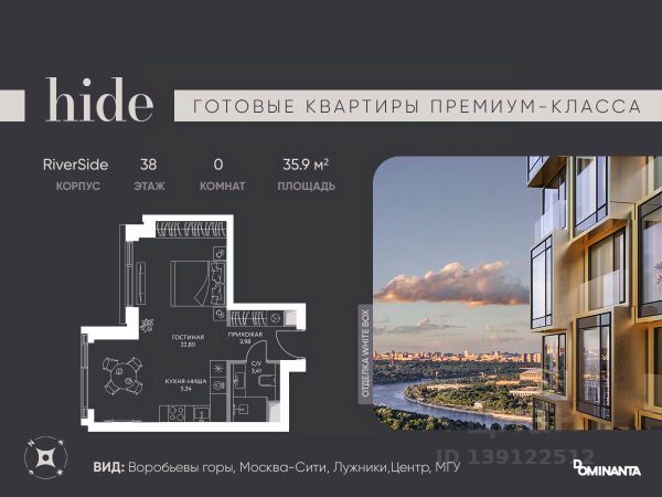 В жилом кластере Родина Парк рядом с природным заказником Долина реки Сетунь продаётся квартира студия.