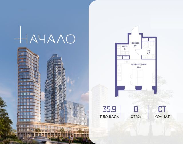 Старт продаж! Квартиры в Москва-Сити в самой инновационной башне Оне. В продаже студия площадью 34.80 м² на 40-м этаже. Новый современный жилой комплекс премиум-класса Оне расположен в самом сердце деловой жизни столицы — в Москва-Сити, где захватывающая дух архитектура встречается с безупречным уровнем комфорта. Оне находится в Пресненском районе, в пешей доступности от станции метро "Деловой центр". Проект был разработан выдающимся архитектором Сергеем Кузнецовым при участии международного бюро Gensler. Уникальная скульптурная форма башни, вдохновленная лентой Мебиуса, создает новый узнаваемый силуэт делового центра и задает непревзойденный стандарт вертикальной жизни. По замыслу архитекторов, жилой комплекс представляет собой две вертикальные башни, соединенные в нижней и верхней точках. На 85 этаже расположен Sky Garden — самый высокий в Европе парк с оазисом природы и секретным садом в облаках, а на 83 этаже парит стеклянный мост Sky Bridge с панорамными видами. Важнейшей особенностью комплекса является его всесторонняя инфраструктура по принципу All-in-Оне: закрытый Клуб с лаунжами, приватным кинотеатром, бильярдной, рабочими зонами и фитнесом. Здесь же расположена торговая галерея бутиков и премиальный гастро-кластер, концепцию которого разработал известный ресторатор Александр Сысоев. Особенности комплекса: - Эксклюзивная архитектура от главного архитектора Москвы - Самый высокий в Европе небесный сад Sky Garden на 85 этаже - Панорамное остекление от пола до потолка во всех квартирах - Smart-инженерия и сервис уровня пятизвездочного отеля - Приватная Клубная инфраструктура All-in-Оне - Трехуровневый паркинг с зарядными станциями для электрокаров - Круглосуточная безопасность и консьерж-сервис Расположение комплекса: - Пешая доступность от станции метро "Деловой центр" - 2 минуты до Экспоцентра - 5 минут до Дома Правительства - 7 минут до Кутузовского проспекта Продается квартира-студия от застройщика в округе ЦАО в Москве.