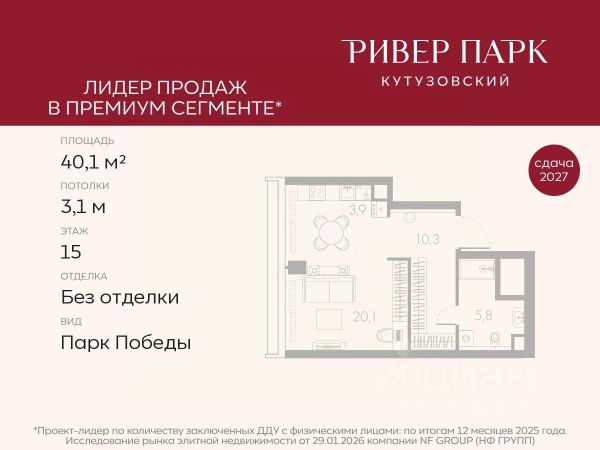 Продается студия площадью 21.3 кв.м. на 2-м этаже в жилом комплексе премиум-класса Ривер Парк Кутузовский в Башне Бриллиант Премиальный жилой комплекс Ривер Парк Кутузовский строится в одном из самых престижных районов столицы Дорогомилово, на берегу Москвы-реки с лучшими видами на Москва-Сити. Яркий проект в стиле эко-футуризма станет самым масштабным и самым высотным ЖК в локации Кутузовского проспекта. Расположение и Транспортная доступность: • На берегу Москвы-реки, напротив Москва-Сити • 600 метров до Кутузовского проспекта • Удобный съезд с ТТК • Прямой выезд на МКАД по Проспекту Багратиона. • В пешей доступности 3 станции метро: Фили, Парк Победы, Кутузовская, а также станция МЦД Фили. Архитектура от именитого бюро ADM отличается уникальной пластикой фасадов - башни словно парят в воздухе, играя гранями как драгоценные камни. Жилой комплекс состоит из 5-ти небоскребов с приватным парком 2 Га и внешней торговой галереей с открытым доступом. В закрытом внутреннем дворе уникальная по насыщенности клубная инфраструктура только для жителей: • Площадка Мультиспорт (баскетбол, футбол, воллейбол, большой теннис) • Детский игровой клуб Немо • Музыкальная студия • Клуб Гедонист с бильярдной • Студия стиля для стилистов и массажа • Гольф-симулятор • Караоке Впервые в Москве лаунж-зоны на крыше небоскребов, только для жителей: • Всесезонные беседки иглу • Джакузи • Гриль • Площадка для занятий йогой • Самые высоки качели на крыше в России • Видовые площадки Благоустройство комплекса занимает 3 гектара и разработано мировым экспертом по городским парковым ландшафтам - голландским бюро WEST8. Концепция проекта дать жителям отдохнуть от городского ритма и расслабиться среди природы. В Приватном парке уже высажены хвойные деревья-крупномеры сосны и ели. • Зеркальный пруд с арт-объектом • Две детские площадки • Точка спорта с тренажерами и турниками • Цветущий сад • Зеленый театр со сценой и проектором • Видовая зона отдыха с очагом • Солнечная терраса с лежаками На территории жилого комплекса планируется строительство коммерческого образовательного центра, включающего детский сад на 200 мест и школу на 460 мест.
