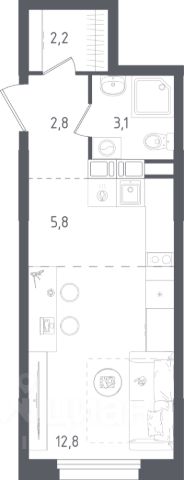 Продаётся студия в строящемся доме (Корпус 2 стр2), срок сдачи: IV-кв. 2026, общей площадью 14.1 кв.м., на 5 этаже. Новый жилой комплекс "Ольховый Квартал" от Группы Самолет