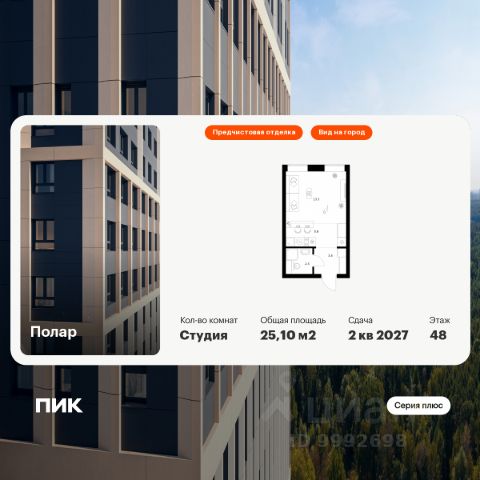 Продаётся квартира-студия площадью 25,2 кв.м на 21 этаже 50 этажного дома (Корпус 1.5, Секция 2) проекта ПИК Полар. Светлый просторный подъезд на уровне земли, функциональная планировка, большие окна, предчистовая отделка. "Полар" расположен в двух минутах пешком от Медведковского заказника и вблизи метро "Медведково". Жилой квартал "Полар" строится на севере Москвы в районе Северное Медведково, в 17 минутах пешком от станции метро "Медведково". Все дома в "Поларе" - с индивидуальным дизайном. Над проектом работали сразу два архитектурных бюро - голландцы de Architekten Cie и российская студия Kamen Architects. Благодаря сочетанию двух разных направления в архитектуре, весь квартал будет выглядеть очень оригинально. У голландцев получились дома с чёткими линиями, динамичной архитектурой и панорамными балконами. А в башне Kamen отражается стремительность большого города и созерцательное спокойствие лесопарка. В квартал входит 6 жилых домов разной высоты, собственный детский сад, подземный двухэтажный паркинг, места для спорта, прогулок и отдыха. В просторных лобби - два выхода на уровне земли без порогов и пандусов. На входе установлены IP-домофоны, которыми можно управлять со смартфона. А на первых этажах откроются магазины, кафе и разные полезные сервисы. С верхних этажей "Полара" откроется впечатляющий вид на Медведковский заказник и Москву. В наших дворах мы установим удобные лавочки со встроенными портами USB и Type-C для зарядки мобильных устройств. Не нужно будет возвращаться домой, чтобы зарядить смартфон или ноутбук: можно весь день работать на свежем воздухе или сколько угодно снимать на видео играющего на площадке ребёнка. В шаговой доступности город построит общеобразовательную школу на 350 мест. Район Северное Медведково, где расположен "Полар", входит в городскую программу "Индустриальные кварталы". По ней бывшие промышленные зоны переделывают в комфортные для жизни пространства. Рядом с "Поларом" уже есть спортивный комплекс, новая школа, МФЦ и поликлиники. Артикул 875268 (Застройщик АО "Специализированный застройщик "ТМП 20") Продается квартира-студия от застройщика рядом с метро Бибирево.