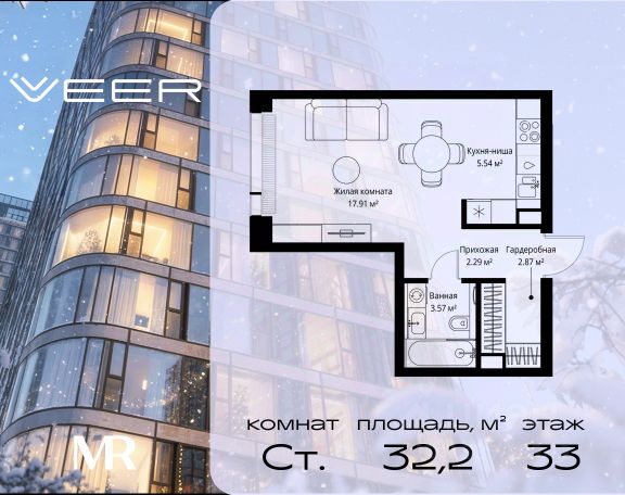 Старт продаж новой очереди! Продаётся студия общей площадью 28.19 м² без отделки в ЖК VEER на 9-м этаже 25 этажного дома. VEER.2 — вторая очередь футуристичного квартала бизнес-класса VEER. Это новая экосистема в престижном Западном округе Москвы, поражающая масштабностью внутренней инфраструктуры. ЖК находится всего в 5 минутах от Кутузовского проспекта и в 15 минутах от Сколково. Ансамбль из четырех стеклянных башен с доминантой в 237 метров разработан по принципу современного урбанизма и выражен в лаконичных объемах — параллелепипедах со сглаженными углами, которые придают зданиям утонченный вид. Расположение и транспортная доступность: • Образовательный комплекс в составе топовой школы, состоящий из двух зданий: основное на 1500 школьных и 450 дошкольных мест, отдельное здание детского сада на 300 мест. • Парк "Долина реки Сетунь" площадью более 700 гектаров • Рядом МГУ, МГИМО, РАНХиГС и Академия ФСБ • 15 минут по Кутузовскому проспекту до ужина в центре с видом на Москву-реку • 18 минут пешком до м. "Давыдково" • Открытие новых станций метро в шаговой доступности в будущем Инфраструктура: Двор в VEER.2 — это ассиметричные холмы, каменные "лабиринты", зеленые ковры и хвойные островки с единой живой экосистемой. Здесь есть все: • Павильон умиротворения Место отдыха под навесом в спокойной части двора, окруженное деревьями. • Активная тропа Тактильная дорога из камней разного диаметра для расслабляющих прогулок. • Бизнес-гарден Оборудованное пространство для работы на свежем воздухе со столом и встроенными розетками. • Детская площадка Двухуровневая площадка "Ботаника" с песочницей, переговорной трубой и горкой "Дружба". Компания MR предлагает своим клиентам специальные условия приобретения квартир в рамках программ ипотечного кредитования от банков-партнеров.