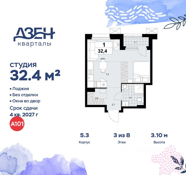 Продаётся квартира-студия площадью 20,2 кв.м на 9 этаже 16 этажного дома (Корпус 2.6/1.2, Секция 2) проекта ПИК Бунинская набережная. Светлый просторный подъезд на уровне земли, функциональная планировка, большие окна, предчистовая отделка. Удобное расположение: 18 минут пешком от м. "Потапово" и 12 минут на автомобиле до станции "Бунинская аллея". 12 минут на автомобиле до трассы Солнцево — Бутово — Варшавское шоссе. 20 минут на автомобиле до МКАД и Калужского шоссе. 1520 минут езды до живописных парков: "Бутовский лесопарк", заказник "Южное Бутово". Особенности проекта Камерный квартал в Новой Москве, на берегу Ивановского пруда. Одна из ключевых особенностей проекта — квартиры с панорамным видом на воду. Архитекторы вдохновились локацией проекта: природные оттенки и активная пластика корпусов напоминают рельефные выступы на берегу, а окна отражают водную гладь, визуально объединяя дома с природой. Преимущества проекта Светлые и просторные лобби с зонами ожидания. Подземный паркинг. Набережная и пешеходная аллея для прогулок. Парк на склоне с игровой зоной. Готовая инфраструктура района: 3 школы, 6 детских садов, взрослая и детская поликлиники. Артикул 968609 (Застройщик ООО СЗ "Стройком")