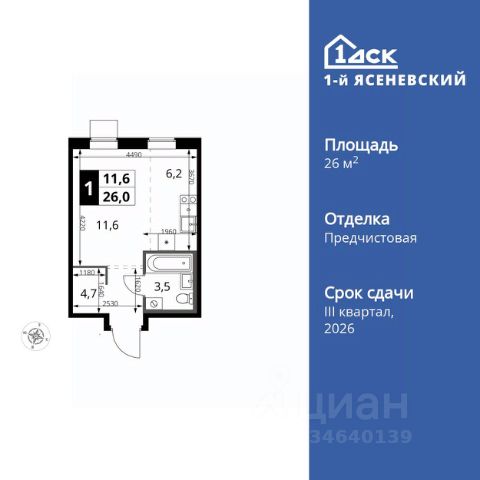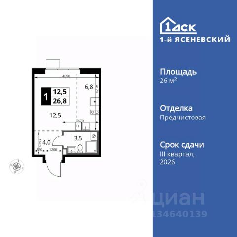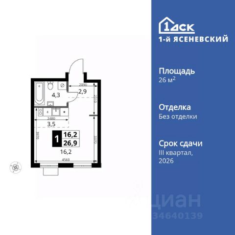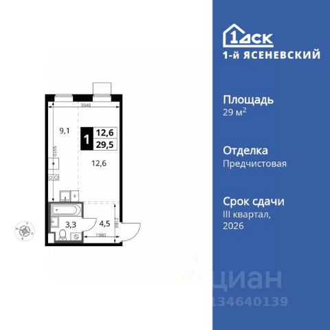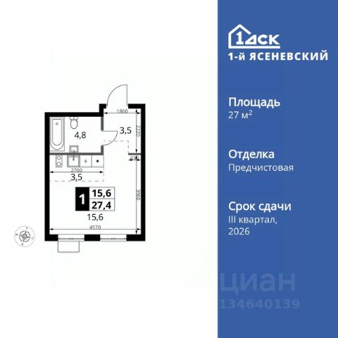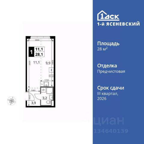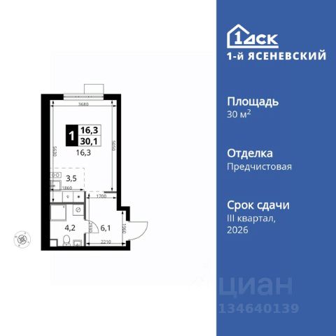 Прямая продажа от застройщика! Жилой Комплекс класса Комфорт Плюс. Продаётся квартира-студия номер 588 общей площадью 30.7 кв.м. на 18-м этаже 18 этажного здания. Без отделки. Особенности квартиры: - Квартиры рядом с метро - м. Корниловская 9 мин пешком - 63 га лесопарка за окнами - Школа c it-кластером и бассейном. 2 детских сада - Линейная планировка - максимальная функциональность и удобство. - Просторная ванная - место для расслабления и уединения. - Увеличенная высота потолков - ощущение простора и легкости. - Ниша под шкаф - компактное и удобное место для вещей. Информация о комплексе: В жилом комплексе комфорт-плюс класса "1-го Ясеневского" доступны преимущества двух стилей жизни. Ведь в пешей доступности метро, школа с 25-метровым бассейном и IT-кластером и при этом целых 63 га благоустроенного Троицкого лесопарка под окнами, где так приятно дышать свежим воздухом и слушать пение птиц. Собственная закрытая территория "1-го Ясеневского" представляет собой уютный оазис. Здесь и зеленый освещенный бульвар для прогулок, система велодорожек, маленькая городская площадь, кафе, пекарни и кофе поинты. А еще дворы без машин и многоэтажная парковка. Изюминка территории - фруктовые деревья во дворах и городские сады. "1-й Ясеневский" - всего в 1 км от МКАД, на территории новой Москвы. Жилой комплекс, где есть все необходимое для современного человека. Транспортная доступность: До метро "Корниловская" - 12 минут пешком До метро "Тютчевская" - 25 минут пешком До метро "Теплый стан" - 10 минут на транспорте До метро "Ольховая" - 30 минут на общественном транспорте Личный автотранспорт: Выезд на Калужское шоссе - 500 м МКАД - 1 км Внутренняя инфраструктура: ЖК "1-й Ясеневский" можно назвать идеальным местом для жизни семьи с детьми. Здесь буквально за домом находится Троицкий лесопарк - излюбленное место прогулок молодых родителей. А во внутренних дворах под детские площадки выделены специальные зоны. Они оборудованы всем, что нужно для счастливого детства: современными и максимально безопасными качелями, песочницами и лазалками. Оборудование и игровые сценарии на детских площадках спроектированы вместе с командой детских психологов для правильного развития ребенка и для повышения их интереса. Также рядом с домом два детских садика, один из которых уже построен и школа на 1100 мест. Школу по праву можно назвать образцовым учебным заведением. В ней закладываются основы успешного будущего. Здесь есть класс робототехники, IT-кластер, 25-метровый бассейн и прекрасно оборудованные спортзалы.