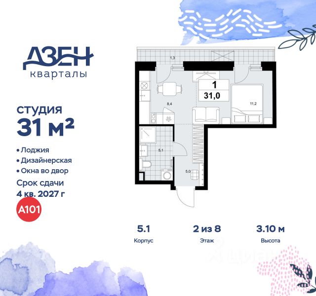 В жилом комплексе, расположенном по соседству с ландшафтным парком "Южное Бутово", продается студия площадью 27.20 кв. м. без отделки. Квартира расположена на 2 этаже 1 корпуса в жилом квартале комфорт-класса "Новые Смыслы" (ГК Unikey/Юникей). Доступная и удобная локация: - 10 минут ходьбы до станции метро "Потапово". - 25 минут ходьбы до станции метро "Бунинская аллея". - 15 минут на авто до Калужского шоссе. - 20 минут на авто до МКАД. - 30 минут на машине до аэропортов "Внуково" и "Остафьево". Продуманный архитектурный проект: - Разноуровневые секции с эстетичные башнями и контрастными цветовыми сочетаниями, напоминающими башни в Сити. - Сказочные виды из окон на современный район столицы. - Авторские планировки с потолками в 3 метра, просторными кухнями-гостиными и мастер-спальнями. - Комфортные бесплатные общественные пространства. - Подземный паркинг с прямым доступом на лифте. - Настоящий лес с живописными пейзажами и прудом прямо во дворе. Расположение Комплекс "Новые Смыслы" расположится в благоприятном районе Новой Москвы - Коммунарка. Зеленое окружение, богатая инфраструктура развивающегося района - все это сформирует особое пространство для комфортной жизни, наполненной смыслом. 10 минут на велосипеде - и вы в ландшафтном парке "Южное Бутово" или сквере у Потаповских прудов. Чуть дальше расположен Бутовский лесопарк. В окружении "Новых Смыслов" вы найдете все необходимые социальные объекты. В двух шагах от дома находится 5 школ, более десятка детских садов, секции для занятий малышей и подростков, частные клиники, супермаркеты, рестораны, студии красоты и фитнес-центры. За 12 минут на авто вы доберетесь до ледовой арены, комплекса "Спорт Станция" и спа-центра "Termoland". Внутренняя инфраструктура Для жителей "Новых Смыслов" будут созданы бесплатные общественные пространства: - Деловая гостиная с эстетичным коворкингом и переговорными. - Гостиная для души и тела, включающая фитнес-зону с тренажерами и пространства для стретчинга, йоги и медитаций. - Гостиная детства, где дети будут играть и развиваться под присмотром тьютора. - Кино-гостиная - кинотеатр на крыше одного из домов, предлагающий разнообразную программу. - Прачечная, работающая только для жильцов. Вместе с корпусами комплекса на территории запланировано строительство детского сада. На первых этажах корпусов откроются кофейни, пекарни, сервисы быта и пункты доставки. Благоустройство Чтобы отдохнуть от суеты города, достаточно выйти во двор: здесь раскинулся настоящий лес с живописными пейзажами. В тени деревьев жителей ждут пруд с мостиком и беседкой на берегу, тихие прогулочные аллеи, спортивная площадка и зоны для занятий йогой и бадминтоном на свежем воздухе. Юных жителей порадуют современные детские площадки, жукарий и специальное пространство для подвижных игр. Безопасность на территории гарантирована: двор огорожен от машин и оснащен камерами видеонаблюдения.