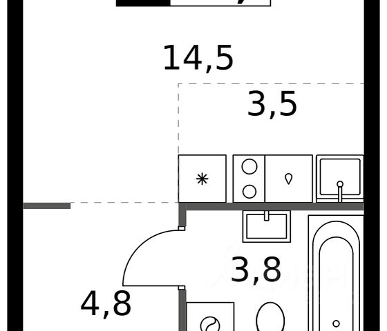 Продаётся студия 188, площадью 31,54 м², на 8 этаже в ЖК "Пехра" корпус 8. Стоимость — от 6017959 руб. Квартира без отделки, планировка односторонняя, окна во двор.