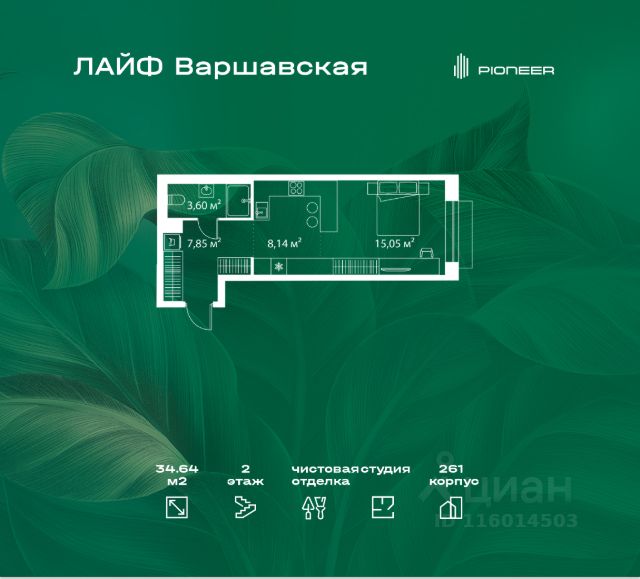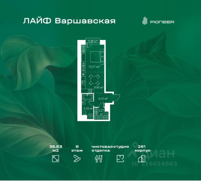 Продаётся студия в строящемся доме (К6-1), срок сдачи: IV-кв. 2026, общей площадью 36.83 кв.м., на 8 этаже. LIFE-Варшавская это жилой квартал для тех, кто ищет покой и стремится проводить больше времени в кругу самых близких людей. Новый проект ГК "Пионер" возводится на юге Москве в минуте пешком от станции метро "Варшавская". В LIFE-Варшавская детально продумана внутренняя инфраструктура: в квартале построят три детских сада, одну школу, три многоуровневых наземных паркинга, все первые этажи будут отданы под коммерческие помещения. Архитектурную концепцию проекта LIFE-Варшавская разработало одно из старейших японских бюро Nikken Sekkei. В основу проектирования легла идея квартальной структуры планировки, широко применяемая в крупных европейских городах. LIFE-Варшавская располагается в окружении живописных парков столицы, каждый из которых прекрасно подойдет для прогулки или занятия спортом. Музей-заповедник "Коломенское", парк "Садовники", Борисовские пруды, парк "Царицыно", Битцевский лес, Коробковский сад расстояние от квартала до любой из этих парковых зон не превышает 4 км. Комплекс LIFE-Варшавская станет настоящим преображением района Москворечье-Сабурово. На четверть своей территории квартал будет состоять из деревьев, кустарников, цветочных клумб, зеленых газонов и лужаек. Через весь квартал пройдет прогулочная аллея протяженностью почти 1 км. Здесь разместятся магазины, веранды кафе, зоны отдыха для всей семьи. В самом сердце жилого комплекса будет заложен сквер с пешеходными дорожками, детской площадкой, зоной для занятий спортом.