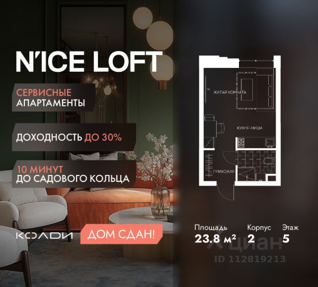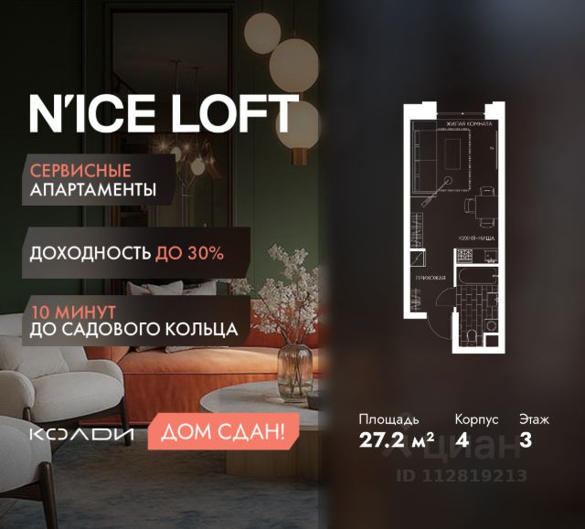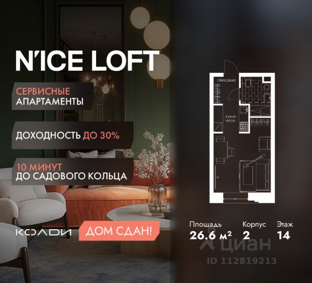 N'ICE LOFT — готовый комплекс апартаментов с собственным спортивным кластером в 10 минутах от Садового кольца. Комплекс апартаментов бизнес-класса N'ICE LOFT, девелопером которого выступила компания КОЛДИ, представляет собой знаковое жилое пространство, на территории которого органично объединены высококачественная инфраструктура для комфортной жизни и полноценный спортивный кластер. N'ICE LOFT — новая спортивная доминанта Москвы, где для жителей и их гостей предусмотрено более 20 000 м², созданных специально для тренировок, игр, восстановления и оздоровления. Автором выразительной городской эстетики выступило архитектурное бюро APEX. Строгие силуэты фасадов эффектно возвышаются над благоустроенным окружением, а световые блики элегантно подчеркивают структурное фасадное остекление. Сердце проекта — физкультурно-оздоровительный комплекс с двумя ледовыми аренами формата НХЛ — профессиональными площадками. Помимо спортивных арен на территории N'ICE LOFT предусмотрено пять многофункциональных залов, где каждый сможет реализовать свой спортивный потенциал. Для тех, кто предпочитает тренировки и прогулки на свежем воздухе, создан спортивный парк общей площадью 6 300 м² с воркаут-зонами, игровыми площадками и уединенными пространствами для отдыха. Также внутри квартала проложена километровая беговая дорожка, которая доступна к использованию в любое время года. Особое внимание архитекторы уделили входной группе — просторное авторское лобби с потолками до 9 метров с использованием природных элементов. Резиденты и их гости смогут насладиться садом, не покидая пределы дома. Территория апарт-комплекса N'ICE LOFT соответствует современным стандартам безопасности: инновационная система видеонаблюдения, охраняемый подземный паркинг и круглосуточный консьерж-сервис. Преимущества N'ICE LOFT: Готовый комплекс с собственным спортивным кластером в 10 минутах от Садового кольца Современная архитектура с выразительными контрастными фасадами Спортивная инфраструктура 20 000 м²: 2 ледовые арены формата НХЛ, 5 многофункциональных залов, беговая дорожка 1 км Спортивный парк 6 300 м² с зонами для разных видов активностей Более 10 видов спорта в одном кластере Апартаменты с панорамными окнами и потолками до 5 метров Видовые лоты с террасами и патио Авторское лобби с потолками до 9 метров Консьерж-сервис 24/7 Охраняемый подземный паркинг Продам квартиру-студию от застройщика в районе Нижегородский в Москве.