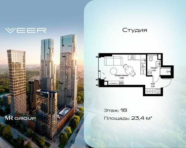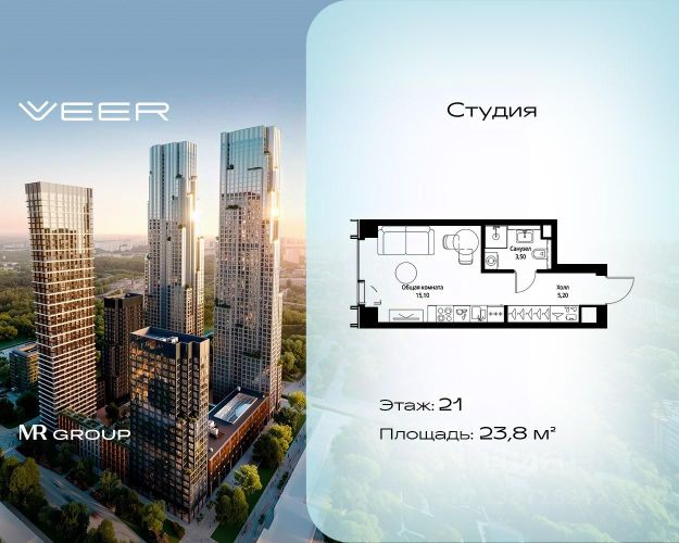 Старт продаж новой очереди! Продаётся студия общей площадью 28.19 м² без отделки в ЖК VEER на 11-м этаже 25 этажного дома. VEER.2 — вторая очередь футуристичного квартала бизнес-класса VEER. Это новая экосистема в престижном Западном округе Москвы, поражающая масштабностью внутренней инфраструктуры. ЖК находится всего в 5 минутах от Кутузовского проспекта и в 15 минутах от Сколково. Ансамбль из четырех стеклянных башен с доминантой в 237 метров разработан по принципу современного урбанизма и выражен в лаконичных объемах — параллелепипедах со сглаженными углами, которые придают зданиям утонченный вид. Расположение и транспортная доступность: • Образовательный комплекс в составе топовой школы, состоящий из двух зданий: основное на 1500 школьных и 450 дошкольных мест, отдельное здание детского сада на 300 мест. • Парк "Долина реки Сетунь" площадью более 700 гектаров • Рядом МГУ, МГИМО, РАНХиГС и Академия ФСБ • 15 минут по Кутузовскому проспекту до ужина в центре с видом на Москву-реку • 18 минут пешком до м. "Давыдково" • Открытие новых станций метро в шаговой доступности в будущем Инфраструктура: Двор в VEER.2 — это ассиметричные холмы, каменные "лабиринты", зеленые ковры и хвойные островки с единой живой экосистемой. Здесь есть все: • Павильон умиротворения Место отдыха под навесом в спокойной части двора, окруженное деревьями. • Активная тропа Тактильная дорога из камней разного диаметра для расслабляющих прогулок. • Бизнес-гарден Оборудованное пространство для работы на свежем воздухе со столом и встроенными розетками. • Детская площадка Двухуровневая площадка "Ботаника" с песочницей, переговорной трубой и горкой "Дружба". Компания MR предлагает своим клиентам специальные условия приобретения квартир в рамках программ ипотечного кредитования от банков-партнеров.