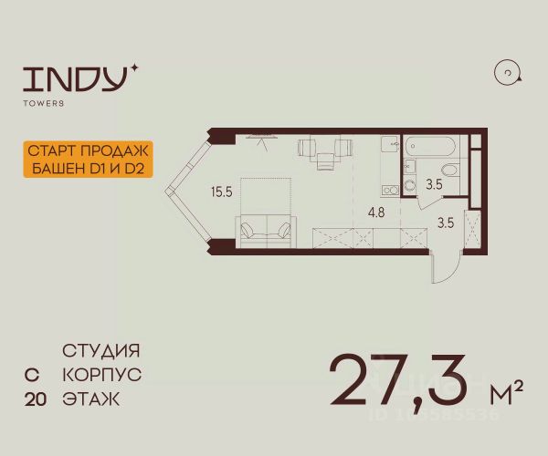 Продажа от застройщика. Продается просторная студия на 24 этаже жилого комплекса Indy Towers. Вид из окон: во двор. Срок сдачи: 4 кв. 2026 г. Отделка: Квартиры продаются с отделкой WhiteBox. - Вам не придется заниматься черновыми работами. - Возможность реализовать любой дизайн-проект. Расположение: Комплекс расположен в Хорошевском районе Москвы, на улице Куусенина, в окружении почти 150 гектаров парков для прогулок и активного отдыха. Помимо этого, рядом с комплексом есть: - Детская международная академия тенниса - Ледовый спортивный комплекс ЦСКА - Футбольный стадион "ВЭБ-Арена" - Крупнейший в Европе торовый центр "Авиапарк" - Богатый выбор государственных и частных школ - 8 парков, окружающих комплекс Транспортная доступность: - 3 минут до метро Зорге - 2 минуты пешком до парка Березовая роща - 10 минут на машине до ТТК - 8 минут на машине до ТРЦ Авиапарк Внутренняя инфраструктура Indy Towers: - Кафе и продуктовые магазины - Тайский SPA - Фитнес зал - Комьюнити-зона - Детский клуб Аквилон KIDS - Детский сад Преимущества: - Технология энергоэффективности Termo-S, снижающая теплопотерю домов и позволяющую экономить на электроснабжении - Soundstop - технология дополнительной шумоизоляции на 39 дБ в квартирах с WhiteBox и чистовой отделкой - Система умного дома inHome 3.0 позволит контролировать коммунальные расходы, оплачивать счета и пользоваться услугами, не выходя из умного дома