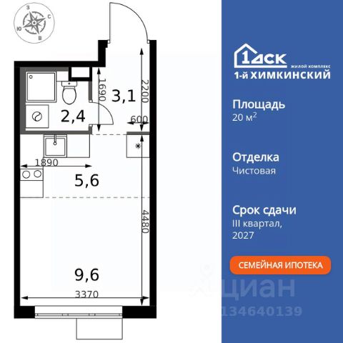 • ✓ В базе Циан 80 квартир-студий с отделкой рядом с метро Химки.