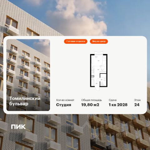 Продаётся квартира-студия площадью 25,4 кв.м на 2 этаже 25 этажного дома (Корпус 5-8, Секция 1) проекта ПИК Томилинский бульвар. Светлый просторный подъезд на уровне земли, функциональная планировка, большие окна, c отделкой. Жилой квартал "Томилинский бульвар" возводится рядом с Кузьминским парком в Котельниках. В 20 минутах пешком метро "Котельники", а на автомобиле 4 минуты до Новорязанского шоссе и 6 минут - до МКАД. В жилом квартале 11 корпусов. Высота домов - 25 этажей. В "Томилинском бульваре" будут три собственных детских сада, поликлиника, паркинги для жителей и гостей квартала, парки с Wi-Fi во дворе каждого дома - с местами для спокойного отдыха, спортивными и детскими площадками. На первых этажах откроются кафе, магазины и другие сервисы, важные для комфортной жизни. В районе, где строится "Томилинский бульвар", всё рядом: школы, детские сады, магазины, торговые центры - например, до "МЕГА Белая Дача" можно доехать за 15 минут. Ещё здесь много мест для прогулок и отдыха на природе, совсем рядом благоустроенный сквер "Патриот". В 13 минутах пешком находится парк "Кузьминки", а в 12 минутах на автомобиле - Люберецкие карьеры, где можно ловить рыбу, загорать и заниматься водными видами спорта в экстрим-парке. Артикул 989446 (Застройщик АО "Яркий мир")