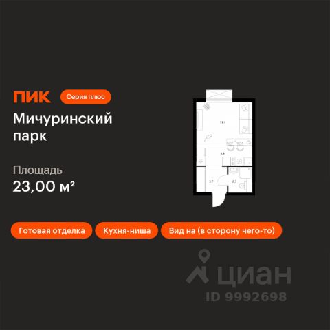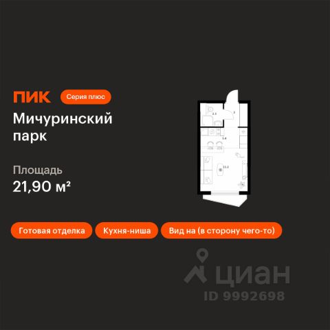 Продаётся квартира-студия площадью 19,7 кв.м на 11 этаже 24 этажного дома (Корпус 4.2, Секция 1) проекта ПИК Мичуринский парк. Светлый просторный подъезд на уровне земли, функциональная планировка, большие окна, c отделкой. "Мичуринский парк" расположен на западе Москвы, в районе Очаково-Матвеевское, в 7 минутах пешком от метро "Озёрная". Архитектурную концепцию корпусов 4.4 и 4.5 разработала российская студия KK ARCHSTUDIO. У каждого корпуса свой характер — его формируют уникальная форма зданий и пластика фасада. Динамичные складки эркеров образуют характерный геометрический рисунок, который поддерживают и дополняют архитектурные детали. В корпусах 4.4 и 4.5 открытые балконы разнообразных форм: прямоугольные, фигурные. Все балконы выходят в тихий внутренний двор-парк. В эркерной части обоих корпусов предусмотрены лоджии. У подъездов будет два выхода: на улицу и во двор-парк. В наших дворах мы установим столы и лавочки со встроенными зарядными устройствами. Не нужно будет возвращаться домой, чтобы зарядить смартфон или ноутбук: можно весь день работать на свежем воздухе. В лобби "Мичуринского парка" будет удобная зона ожидания, где можно встретить друзей, курьера или дождаться такси, а также гостевая туалетная комната со столиком для пеленания. На территории проекта предусмотрен подземный паркинг и кладовые с надежной системой вентиляции, пожаротушения и системой круглосуточного видеонаблюдения. Собственная инфраструктура проекта включает два детских сада и две школы. Также по соседству с жилым комплексом будет построен многофункциональный торгово-офисный комплекс Lakes. Вдоль всего "Мичуринского парка" будут проходить несколько пешеходных бульваров с местами для отдыха. Рядом с проектом несколько зелёных зон, которые прекрасно подойдут для отдыха и спорта на свежем воздухе. Жители "Мичуринского парка" смогут выбирать, куда отправиться на прогулку: в пешей доступности Очаковский парк, парк Школьников и парк Олимпийской деревни, а на автомобиле можно быстро добраться до Тропарёвского лесопарка и Мещерского парка. Вблизи "Мичуринского парка" расположены ведущие вузы: МИРЭА, МГИМО, РАНХиГС, Институт радиотехники и телекоммуникационных систем и Академия ФСБ. Артикул 983689 (Застройщик ООО "СПЕЦИАЛИЗИРОВАННЫЙ ЗАСТРОЙЩИК "ОЗЁРНАЯ 44")