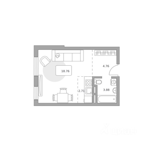 Продаётся студия 191, площадью 22,99 м², на 13 этаже в ЖК "Аникеевский" корпус 1.2. Стоимость — от 7520223 руб. Квартира с отделкой, планировка односторонняя, окна во двор.
