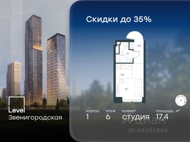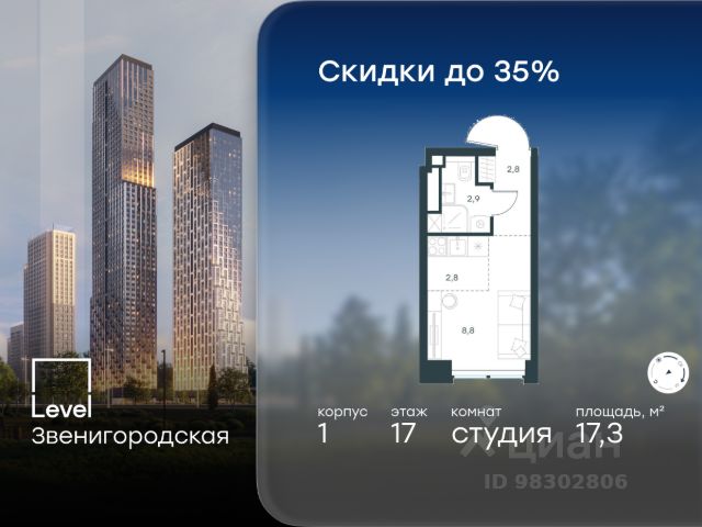 10 минут от Москва-Сити В продаже квартира площадью 22.60 м² с предчистовой отделкой на 8 этаже 55 этажного дома. Квартира расположена в корпусе Anna. JOIS это премиальный жилой комплекс от девелопера MR в районе Хорошёво-Мнёвники. Он включает несколько эффектных небоскрёбов высотой 47-56 этажей, эксклюзивные форматы квартир с панорамным остеклением, подземный двухуровневый паркинг на 239 м/м, собственную приватную инфраструктуру, закрытый ландшафтный парк 2,3 Га с функциональным зонированием и охраняемой территорией. Над проектом работали лучшие команды международных агентств с многолетним опытом: Genpro, S&P, iLight International и другие. Расположение Пешком: - 5 мин. ст. МЦК "Хорошёво"; - 15 мин. ст. м. "Народное ополчение"; - 10 мин. ст. метро "Звенигородская" с 2027 года; - 20 мин. причал "Карамышевский". На автомобиле: - 3 мин. до Звенигородского шоссе; - 5 мин. до ТТК: - 8 мин. до Серебряного бора и Строгинского затона - 10 мин. до ММДЦ "Москва-Сити"; - 40 мин. до аэропорта "Шереметьево"; Благоустройство - собственный ландшафтный парк 2,3 Га; - парк скульптур от Cosmoscow; - консьерж-сервис 24/7; - сервисный лифт и вход; - игровые и спортивные площадки; - коворкинг с библиотекой; - лаунж-зона с камином; - игровые комнаты для детей и клуб для подростков с оборудованием для видеоигр; - спортивная студия для индивидуальных тренировок; - гостиная с мини-кухней; - зоны для выгула собак; - подогрев пешеходных дорожек в зимний период; - автополив зелёных насаждений; - премиальные рестораны, кафе, химчистки, аптеки и супермаркеты. Окружение - 4 парка: Покровское-Стрешнево, Филёвский парк, Серебряный бор и Берёзовая роща; - 15 общеобразовательных заведений, в том числе две школы из самых лучших в Москве: государственная школа "Интеграл" и частная "Хорошкола"; - спортивное сооружение "ВЭБ Арена", домашний стадион ФК ЦСКА; - крупнейший в Европе торгово-развлекательный центр "Авиапарк".