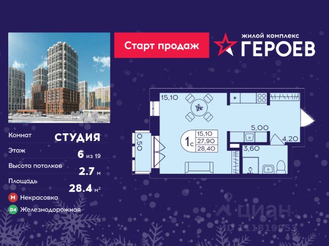 • ✓ В базе Циан 335 квартир-студий с отделкой рядом с метро Ольгино.