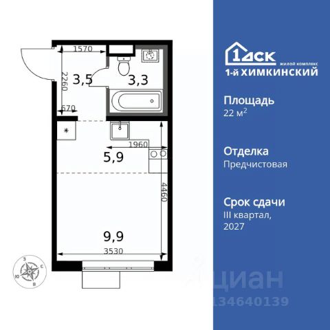 УСПЕЙ ПО СЕМЕЙНОЙ ИПОТЕКЕ БЕЗ НАЦЕНКИ! От 25 000 рублей в месяц! Прямая продажа от застройщика! Жилой Комплекс класса Комфорт. Продаётся квартира-студия номер 47 общей площадью 25.6 кв.м. на 5-м этаже 17 этажного здания. Отделка Whitebox. Цена с учётом скидки. Особенности квартиры: - Линейная планировка - максимальная функциональность и удобство. - Увеличенное количество окон - дополнительное освещение и свежий воздух. - Линейная кухня - функциональность и практичность в одном решении. - Ниша под шкаф - компактное и удобное место для вещей. Квартира с предчистовой отделкой (White box). Вам не придется заниматься черновыми и трудоёмкими работы, а чистовую отделку и дизайн - сделайте на свой вкус. Информация о комплексе: Квартал класса комфорт плюс, где современное городское пространство граничит с удивительной природой вокруг. 1-й Химкинский расположен на территории в 102 га и органично вписан в природное окружение Химкинского леса и канала им. Москвы. В проекте предусмотрена богатая коммерческая инфраструктура с собственным торговым центром, общеобразовательные учреждения и социальные объекты. Изюминкой жилого комплекса будут спортивно-оздоровительный комплекс с термами и SPA и семейный парк развлечений. Транспортная доступность: ЖК "1-й Химкинский" дает возможность выбрать любой способ передвижения как до города, так и до самых разных объектов, которые могут представлять интерес для его жителей. Не важно, какой способ передвижения вы предпочитаете, успевать всегда и везде можно вне зависимости от выбора транспорта. - 8 мин. пешком (800 м) до остановки "Золотая Арка" -10 мин пешком (1 км) до остановки "Поворот на Ивакино" Внутренняя инфраструктура: - Безопасность: закрытые дворы без машин, безбарьерная среда и сквозные подъезды, камеры на детских площадках с возможностью трансляции на смартфоне - Идеальный отдых в кругу семьи: семейный парк развлечений на территории, торговый центр (2-х этажный) общей площадью более 8 тыс. кв. м с фудкортом - Образование: 3 детских сада и современная муниципальная школа на 2450 мест - Спортивная среда: закольцованный веломаршрут с навигацией, спортивный комплекс с термами, закрытый тренажерный зал и зоны ворк-аута - Социальные объекты: поликлиника со станцией скорой помощи, пожарное депо - Подземный паркинг и кладовые помещения на -1 этаже, станция техобслуживания и автомойка на территории
