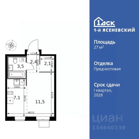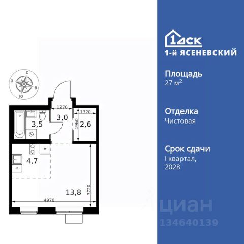 Прямая продажа от застройщика! Жилой Комплекс класса Комфорт Плюс. Продаётся квартира-студия номер 438 общей площадью 30.1 кв.м. на 3-м этаже 18 этажного здания. Предчистовая отделка. Цена с учётом скидки. Особенности квартиры: - Квартиры рядом с метро - м. Корниловская 9 мин пешком - 63 га лесопарка за окнами - Школа c ИТ-кластером и бассейном. 2 детских сада - Организуем показ в удобное для вас время! - Линейная планировка - максимальная функциональность и удобство. - Просторная ванная - место для расслабления и уединения. - Ниша под шкаф - компактное и удобное место для вещей. Квартира с предчистовой отделкой. Вам не придется заниматься черновыми и трудоёмкими работы, а чистовую отделку и дизайн - сделайте на свой вкус. Информация о комплексе: ЖК "1-й Ясеневский": преимущества городской инфраструктуры и природы. Пешая доступность к метро, школе с бассейном и ИТ-кластеру, а также 63 га Троицкого лесопарка под окнами. Закрытая территория с бульварами, велодорожками, кафе и дворами без машин. Фруктовые деревья и городские сады создают уникальную атмосферу. Всего в 1 км от МКАД - идеальный баланс для современной жизни. Транспортная доступность: До метро "Корниловская" - 12 минут пешком До метро "Тютчевская" - 25 минут пешком До метро "Теплый стан" - 10 минут на транспорте До метро "Ольховая" - 30 минут на общественном транспорте Личный автотранспорт: Выезд на Калужское шоссе - 500 м МКАД - 1 км Внутренняя инфраструктура: ЖК "1-й Ясеневский" - идеальное место для семей с детьми. Рядом Троицкий лесопарк для прогулок, а во дворах - современные детские площадки, разработанные с участием психологов. В шаговой доступности два детских сада и школа на 1100 мест с ИТ-кластером, бассейном и классами робототехники. Всё для счастливого детства и успешного будущего. Квартира с предчистовой отделкой - ваш дизайн без черновых работ