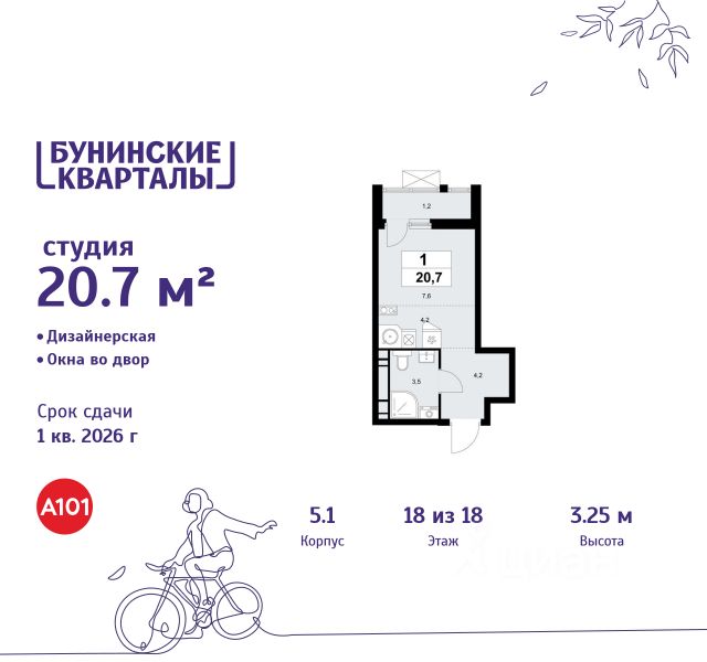 Продается студия 353 в новостройке ЖК "Бунинские кварталы" по адресу Москва, ТиНАО, Новомосковский АО, Сосенское С/П, жилой комплекс Бунинские Кварталы, 5.1, район Коммунарка, Новомосковский административный округ, Москва. Общая площадь квартиры - 28.80 кв. м., этаж 4 из 9, секция 5. Тип проекта, по которому построен дом - монолит, компания-застройщик - ООО "А101". Стоимость квартиры - 13085568 Р. Срок сдачи - 2 квартал 2026. ПРЕДЛОЖЕНИЯ ОТ ЗАСТРОЙЩИКА В ФЕВРАЛЕ 2026: Скидки до 10% на все квартиры. Только в офисах продаж до 28 февраля. Ипотека от 13,9 % для всех! На весь срок. "Семейная ипотека" вернулась. Ставка от 3,5 % на весь срок! Без удорожания! Выгодное ипотечное комбо: Ипотека от 2200 р./мес. и от 6 % после рождения ребёнка! Ипотека для всех "Держи пять!" - ставка 5 % на 2 года! *более подробную информацию по скидкам и акциям уточняйте в отделе продаж ЖК "Бунинские кварталы" строится на юго-западе Москвы. Монолитные дома в лаконичной стилистике гармонируют с живописной природой. Из любой точки района удобно добираться до природных объектов, ключевых транспортных узлов, крупных торговых, спортивных, деловых и медицинских центров. Концепция уникального благоустройства района - "Выходи гулять!". Здесь появятся эстрада для районных творческих мероприятий, спортивные и игровые площадки, скейт-парк, дружелюбные пространства для домашних питомцев, благоустроенная набережная Ивановского пруда. В районе формируется собственная развитая инфраструктура: современные школа на 1100 мест и 2 детских сада на 540 малышей, магазины у дома и сетевые супермаркеты, фитнес, кафе, салоны, детские развивающие центры. Крытый каток "Самолёт Арена" - в 10 минутах пешком. За 15 минут можно дойти до действующей станции метро "Потапово". Предусмотрены удобные автомобильные выезды на проспект Куприна и улицу Александры Монаховой. Особенности "Бунинских кварталов": - ст. метро "Потапово" - 15 минут пешком - своя школа и детские сады - безопасные дворы без машин с системой контроля доступа - насыщенная инфраструктура - в шаговой доступности и на первых этажах домов