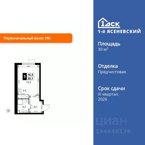 Прямая продажа от застройщика! Жилой Комплекс класса Комфорт+. Продаётся квартира-студия номер 119 общей площадью 26.3 кв.м. на 13-м этаже 21 этажного здания. Отделка Whitebox. Цена с учётом скидки. Особенности квартиры: - Линейная планировка - максимальная функциональность и удобство. - Можно оборудовать рабочее место - комфорт для работы и учёбы. - Ниша под шкаф - компактное и удобное место для вещей. Квартира с предчистовой отделкой (White box). Вам не придется заниматься черновыми и трудоёмкими работы, а чистовую отделку и дизайн - сделайте на свой вкус. Информация о комплексе: Весь микрорайон спроектирован в концепции "без машин". Пейзаж не портят припаркованные автомобили, а родители могут не опасаться за перемещение детей по всему кварталу. Территория комплекса - царство пешеходов. А что делать, если Вы или Вам подвезли чтото габаритное? Проблему решают сквозные подъезды, открывающие доступ в здание с внешней стороны комплекса. Проезд к домам организован по внешнему контуру микрорайона. Места для автомобилей отведены на 7 этажах наземного паркинга и в подземном паркинге 6-го корпуса. За порядком и безопасностью зорко следит множество камер. Безбарьерная среда облегчает передвижение по территории молодых родителей с колясками, маленьких детей и жильцов с ограниченными возможностями. Транспортная доступность: "1-й Саларьевский" расположен в Новой Москве всего в 2 км от МКАД и 5 минутах ходьбы от метро Саларьево. Если Вы за рулем, для Вас удобный выезд на скоростное Киевское шоссе. Передвигаетесь не на автомобиле? Станция метро Саларьево и автовокзал в пешей доступности. У метро находится один из крупнейших ТЦ Новой Москвы "Саларис". Это значит, что всевозможные покупки и разнообразные развлечения для всей семьи тоже рядом. Личный автотранспорт: До Киевского шоссе - 0,2 км До МКАД - 2,4 км До Калужского шоссе - 5 км До Ленинского проспекта - 3,2 км Общественный транспорт: До станции метро "Саларьево" - 7 мин пешком До остановок наземного транспорта - 5-10 мин пешком До Ленинского проспекта на автобусе - 10 мин Внутренняя инфраструктура: Во дворе царит атмосфера легкого беззаботного настроения. По сторонам расположились любимые местными жителями магазинчики, где можно купить товары первой необходимости, кафе, где приятно посидеть с друзьями, и кофе-пойнты. На бульваре можно посмотреть уличную выставку, поиграть с соседями в шахматы и покачаться на световых качелях. Дети растут быстро, и вот уже возникает вопрос садика. На территории есть свой современный садик на 225 мест. Из садика ребенок плавно переходит в свою же муниципальную школу, рассчитанную на 450 мест. Построенная по индивидуальному проекту, она соответствует эстетической и дружелюбной концепции ЖК. Комплекс соседствует с районом, где присутствует уже сложившаяся и развитая инфраструктура. До магазинов, фитнес-центров или кафе легко можно добраться пешком, а до соседних парков можно прокатиться на велосипеде или самокате. В шагов