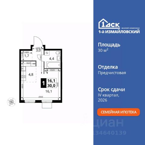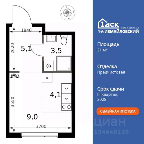БЕЗ ПЕРВОНАЧАЛЬНОГО ВЗНОСА! Прямая продажа от застройщика! Жилой Комплекс класса Комфорт. Продаётся квартира-студия номер 264 общей площадью 21.7 кв.м. на 2-м этаже 6 этажного здания. Предчистовая отделка. Цена с учётом скидки. Особенности квартиры: - Организуем показ в удобное для вас время! - Линейная планировка - максимальная функциональность и удобство. - Увеличенное количество окон - дополнительное освещение и свежий воздух. - Гардеробная - удобство для хранения и организации вещей. Квартира с предчистовой отделкой. Вам не придется заниматься черновыми и трудоёмкими работы, а чистовую отделку и дизайн - сделайте на свой вкус. Информация о комплексе: "1-й Химкинский": гармония современного города и природы на 102 га у Химкинского леса и канала им. Москвы. Развитая инфраструктура: ТЦ, школы, спорткомплекс с термами и СПА, парк развлечений. Идеальный баланс для жизни в окружении зелени и городского комфорта. Транспортная доступность: ЖК "1-й Химкинский" дает возможность выбрать любой способ передвижения как до города, так и до самых разных объектов, которые могут представлять интерес для его жителей. Не важно, какой способ передвижения вы предпочитаете, успевать всегда и везде можно вне зависимости от выбора транспорта. - 8 мин. пешком (800 м) до остановки "Золотая Арка" -10 мин пешком (1 км) до остановки "Поворот на Ивакино" Внутренняя инфраструктура: Безопасность: закрытые дворы без машин, безбарьерная среда, сквозные подъезды, камеры на детских площадках с трансляцией на смартфон. Отдых: семейный парк развлечений, двухэтажный ТЦ 8 000 м² с фудкортом. Образование: 4 детских сада, 2 муниципальные школы. Спорт: закольцованный веломаршрут, спорткомплекс с термами, тренажерный зал, воркаут зоны. Инфраструктура: поликлиника со станцией скорой помощи, пожарное депо. Паркинг: подземный паркинг, кладовые на -1 этаже, СТО и автомойка на территории. Квартира с предчистовой отделкой - ваш дизайн без черновых работ