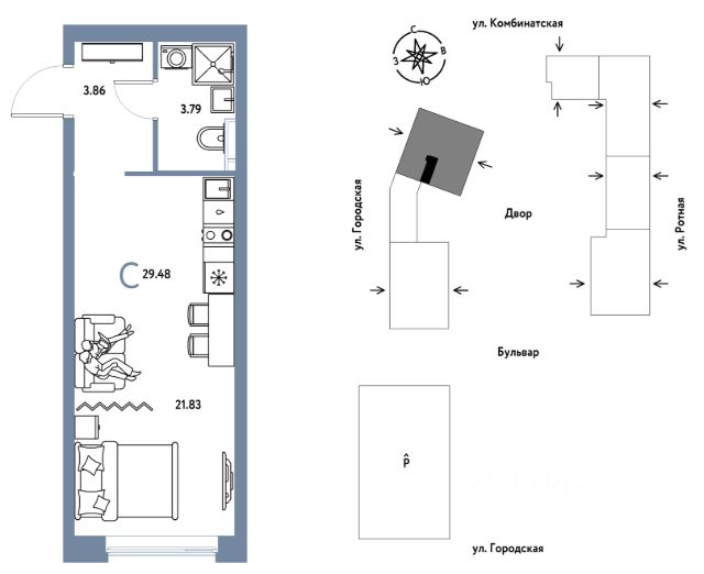 0комнатная квартира площадью 24,92кв. м. на 5 этаже жилого комплекса "Уральский сад".