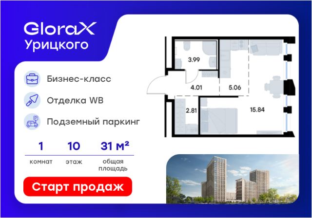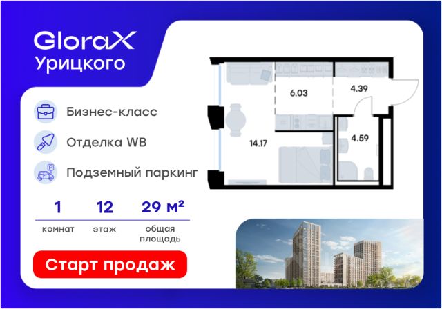 Продается квартира-студия на 8-м этаже в квартале бизнес-класса GloraX Урицкого. Общая площадь лота составляет 28,99 кв. м, из которых 14,22 кв. м отведено под жилую и 6,35 кв. м под кухонную зону. Номер квартиры - 59 GloraX Урицкого это идеальное сочетание динамики мегаполиса и камерности района, где каждое утро начинается легко, а каждый вечер наполнен ощущением дома Преимущества квартиры: cтудия; высокий этаж; вид на улицу. Преимущества, которые изменят вашу жизнь: • Собственная инфраструктура: Всё для комфорта и досуга, не выходя за территорию проекта • Безопасность 24/7: Закрытая территория, видеонаблюдение, система "Умный дом" • Безбарьерная среда: Забота о каждом жителе, независимо от возраста • Футуристичные лобби: Эстетика и комфорт с первых шагов в вашем доме. • Колясочные в каждой секции: Больше пространства в ваших квартирах • Квартиры в отделке White Box: Готовый холст для реализации дизайнерских идей. • Благоустройство в стиле лесопарка: эко-пространство, где природа становится частью повседневной жизни. GloraX Урицкого это проект бизнес-класса для тех, кто живёт в ритме большого города, но ждёт безмятежности у себя дома. Здесь всё важное происходит рядом с вами: работа, встречи, спортивные и культурные активности, прогулки, образование и обучение. Здесь вы ощутите, что вы наконец-то дома — в доме, которого давно ждали. Стоимость действительна при 100% оплате или стандартной ипотеке.