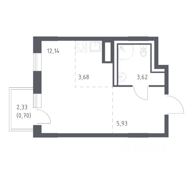 В продаже студия в корпусе 39 ЖК 'Живи! В Рыбацком'. Квартира располагается на 12 этаже, общая площадь 24.58 м2.