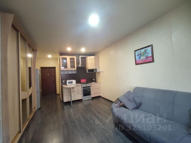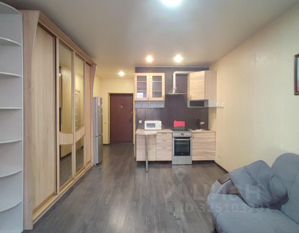 —функциональная планировка: комната с кухонной зоной и выходом на лоджию-ПАТИО, совмещённый санузел, прихожая. Площадь по ЕГРН — 27,4 кв. м. без учёта лоджии.