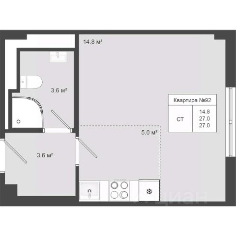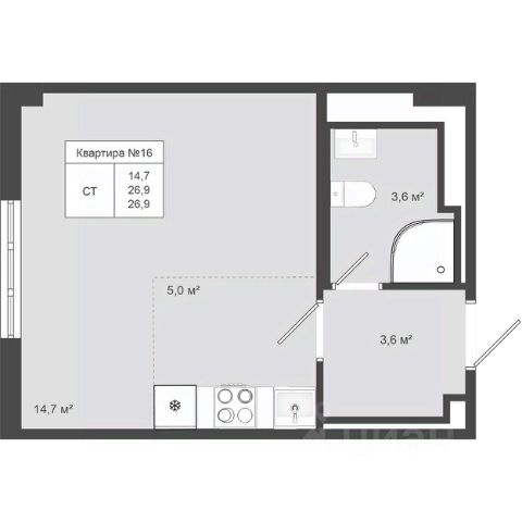 Продаю квартиру-студию 16 кв.м. Именно свой, собственный, кадастровый номер и прописка - не апартаменты, не доля и т.д., полноценная квартира во всех юридических и морально-бытовых смыслах.