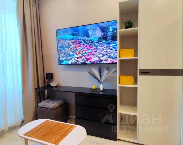В студии - полный ремонт. Вся необходимая мебель и техника (кухонная стенка, стиральная машина, телевизор, микроволновка и т.п.) присутствуют, "заходи и живи" - всё есть на фото - и всё полностью остаётся при продаже квартиры новому собственнику.
