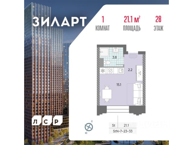 Продаётся квартира-студия в доме ЗИЛАРТ СПАРК общей площадью 20.2 кв. метров на 25 этаже. ЗИЛАРТ СПАРК — новый проект бизнес-класса в жилом квартале "ЗИЛАРТ". Дом, состоящий из трех 43-этажных башен с общим пятиэтажным основанием, сочетает в себе современную архитектуру, передовые технологии и восхитительные виды на ландшафтный парк "Тюфелева Роща" и бульвар Братьев Весниных. По соседству находятся музейно-выставочный центр "Коллекция" и трехэтажный универмаг "ЗУМ". ЗИЛАРТ СПАРК находится в Даниловском районе Москвы. В шаговой доступности — три станции метро ("Автозаводская", "Тульская", "ЗИЛ") и платформа МЦК. На автомобиле также можно быстро добраться до центра города. В пешей доступности есть вся необходимая инфраструктура: супермаркеты, салоны красоты, уютные кафе и рестораны, спортивные студии, места для досуга, отдыха и развлечений. На благоустроенной набережной Марка Шагала располагается действующий причал "ЗИЛ". Проект "ЗИЛАРТ" разработан ведущими архитекторами страны и мира, при этом все они соблюдают единый дизайн-код. ЖК "ЗИЛАРТ" представляет собой 30 домов с эксклюзивной архитектурой, 17 из которых уже сданы и заселены. Квартал обеспечен социальной и общественной инфраструктурой, появились новые улицы и объекты благоустройства. Жилой комплекс даст возможность прогуляться по живописной набережной, просторному парку и бульвару. Любители здорового образа жизни и спортсмены оценят современные площадки для спортивных игр и фитнес-центр с бассейном. Молодые родители будут спокойны за настоящее и будущее детей благодаря современной образовательной среде. В "ЗИЛАРТе" расположена одна из самых больших школ России на 2,5 тысячи учеников. Помимо основного образования, дети могут дополнительно посещать "Кванториум" и множество кружков, заниматься спортом и хореографией. Весной 2020 года "ЗИЛАРТ" стал победителем Всероссийского конкурса в области жилищного строительства в номинации "Лучший жилой комплекс-новостройка в Российской Федерации". Звоните и бронируйте квартиру в новом доме ЗИЛАРТ СПАРК!