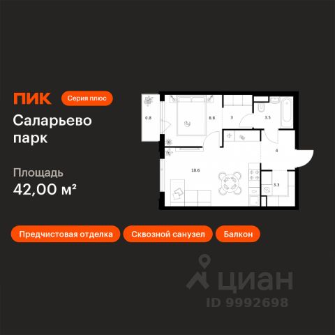 Продаётся квартира-студия площадью 28,8 кв.м на 5 этаже 24 этажного дома (Корпус 82.7, Секция 7) проекта ПИК Саларьево парк. Светлый просторный подъезд на уровне земли, функциональная планировка, большие окна, c отделкой. Жилой район "Саларьево парк" расположен в Новой Москве, в четырёх километрах от МКАД по Киевскому шоссе. Две станции метро: "Саларьево" и "Филатов луг", — находятся в пешей доступности от проекта. Дойти до них можно за 5-10 минут. В квартале уже создана качественная среда, где есть абсолютно всё для полноценной жизни, работы и отдыха. Благодаря удобному расположению проекта всё важное будет рядом: детские сады, школы, кафе и рестораны, шопинг в торговых центрах, фитнес и даже аэропорт. Все корпуса в квартале гармонично сочетаются, образуя единую городскую среду. Между собой их объединяет невысокая этажность и натуральная цветовая гамма. Здесь приятно гулять и проводить время на улице всей семьёй. В "Саларьево парке" создана уникальная образовательная среда, включающая в себя шесть школ, рассчитанных на 6 250 учеников. Две из них уже открыты, их посещает 2 300 детей. Также на территории "Саларьево парка" находится 12 детских садов, один из которых с бассейном. Сейчас уже открыты 7 садов. В "Саларьево парке" открыта уникальная игровая площадка — ПлейХаб "Оригами". Здесь есть ручей, горка-труба и рельефные холмы. Взрослые смогут отдохнуть в уютном кафе, пока дети играют. Также на территории проекта есть СпортХаб — большая спортивная зона, разделённая по интересам и возрастам. Здесь можно заниматься разными видами спорта: футболом, баскетболом, волейболом и стритболом. Зимой центральную часть площадки превращают в каток. Во дворах-парках жилого квартала есть места для отдыха, детские и спортивные площадки. На первых этажах домов расположены магазины, кафе и полезные сервисы. Также вблизи проекта есть несколько масштабных торговых центров. До ТЦ "Саларис" пять минут пешком. Артикул 1032943 (Застройщик ООО "Специализированный Застройщик "Тирон")