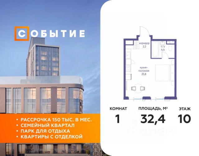 В районе Москворечье-Сабурово продается студия площадью 27.04 м². Она расположена на 14 этаже в 261 корпусе нового жилого квартала Лайф Варшавская. Площадь комнат: спальня — 9,91 м² кухня — 7,64 м² В Лайф Варшавская мы создали идеальные условия для жизни молодых людей и семей с детьми, тинейджеров и спортсменов, домохозяек и бизнесменов. Жилой квартал Лайф Варшавская удачно расположен: 5 минут до станции "Варшавская" 10 минут до станции "Каширская" 18-25 минут до парка-усадьбы "Коломенское", Битцевского леса и музея-заповедника "Царицыно" Богатая инфраструктура — это визитная карточка проекта. На территории работают детский сад на 160 мест и школа на 900 мест с IT-полигоном и мультифункциональным спортивным стадионом. В квартале разместились пешеходный бульвар, игровой плейхаб "Змейка", спортивный кластер с полями для футбола и волейбола, площадка для выгула животных. На первых этажах жилых домов открыты магазины, кафе и рестораны, салоны красоты, арт-галереи, сервисы бытовых услуг, медицинские центры. Концепция жилого квартала создана ведущими архитектурными бюро. Структуры малоэтажных кварталов дополняются высотными башнями-доминантами. Такой тип застройки позволил сформировать освещенную приватную территорию. Продается квартира-студия с балконом в Москве.