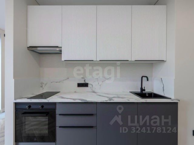 Квартира также оборудована итальянской кухней со встроенной техникой (посудомойка, холодильник, духовка, индукционная плита, раковина с измельчителем и фильтром для воды, вытяжка).