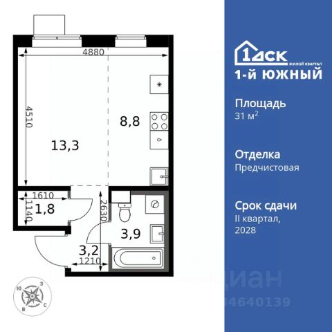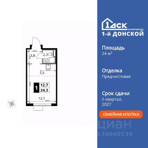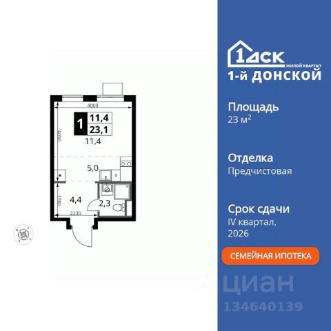 ПОСЛЕДНИЙ ДЕНЬ! СКИДКИ ДО 40%! Прямая продажа от застройщика! Жилой Комплекс класса Комфорт Плюс. Продаётся квартира-студия номер 349 общей площадью 28.9 кв.м. на 9-м этаже 24 этажного здания. Предчистовая отделка. Цена с учётом скидки. Особенности квартиры: - МЦД-5 в пешей доступности - Квартал с собственной набережной - Свои 2 детских сада и школа - Организуем показ в удобное для вас время! - Линейная планировка - максимальная функциональность и удобство. Квартира с предчистовой отделкой. Вам не придется заниматься черновыми и трудоёмкими работы, а чистовую отделку и дизайн - сделайте на свой вкус. Информация о комплексе: ЖК "1-й Донской" в 7 км от МКАД: гармония городского комфорта и природы. Квартиры на 2-3 стороны света, форма секций и разная этажность создают динамичную архитектуру. Тёплая палитра фасадов и подсветка подчеркивают образ. Рядом - Ермолинский парк, Видновский лесопарк и Жуковский парк. Природа воздействует на все уровни восприятия: от видов до звуков и ароматов. Идеальный баланс для жизни в гармонии с окружающей средой. Транспортная доступность: Комплекс удобно расположен в 7 км от МКАД по трассе М-4 Дон (через Видное). Расстояние до Каширского шоссе составляет 12 км. Добраться до метро и центра Москвы позволяет развитая сеть маршрутов общественного наземного транспорта. Действующая ж/д станция Калинина Павелецкого направления в 15-17 минутах ходьбы (МЦД-5 в 2025-2026 гг). Внутренняя инфраструктура: "1-й Донской": продуманная среда в развивающемся районе. На территории - муниципальные школа и 2 детских сада, поликлиника, торговый центр с площадью для мероприятий. Сеть пешеходных маршрутов ведёт к магазинам и кафе, отделённым от дорог зелёными фито-стенами. Сквозные подъезды с панорамным остеклением и входами с улицы и двора наполнены светом. Всё для комфортной жизни в шаговой доступности, от повседневных нужд до общественных пространств. Квартира с предчистовой отделкой - ваш дизайн без черновых работ