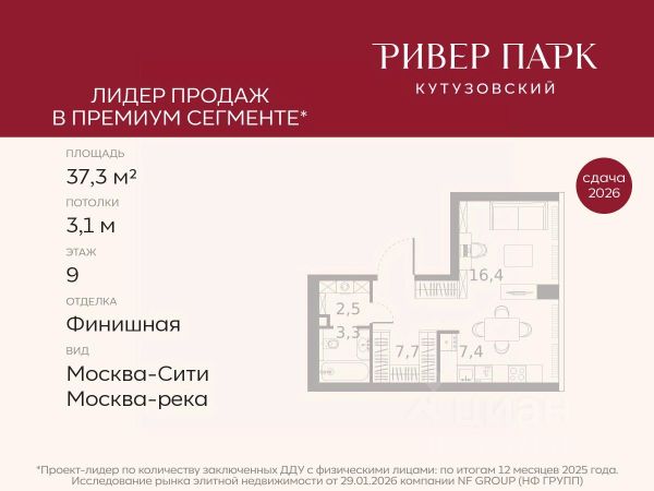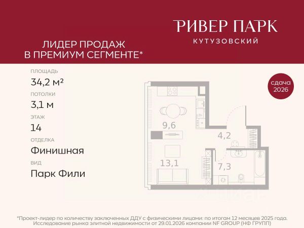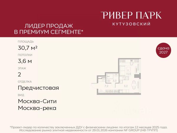 Продается студия площадью 21.3 кв.м. на 2-м этаже в жилом комплексе премиум-класса Ривер Парк Кутузовский в Башне Бриллиант Премиальный жилой комплекс Ривер Парк Кутузовский строится в одном из самых престижных районов столицы Дорогомилово, на берегу Москвы-реки с лучшими видами на Москва-Сити. Яркий проект в стиле эко-футуризма станет самым масштабным и самым высотным ЖК в локации Кутузовского проспекта. Расположение и Транспортная доступность: • На берегу Москвы-реки, напротив Москва-Сити • 600 метров до Кутузовского проспекта • Удобный съезд с ТТК • Прямой выезд на МКАД по Проспекту Багратиона. • В пешей доступности 3 станции метро: Фили, Парк Победы, Кутузовская, а также станция МЦД Фили. Архитектура от именитого бюро ADM отличается уникальной пластикой фасадов - башни словно парят в воздухе, играя гранями как драгоценные камни. Жилой комплекс состоит из 5-ти небоскребов с приватным парком 2 Га и внешней торговой галереей с открытым доступом. В закрытом внутреннем дворе уникальная по насыщенности клубная инфраструктура только для жителей: • Площадка Мультиспорт (баскетбол, футбол, воллейбол, большой теннис) • Детский игровой клуб Немо • Музыкальная студия • Клуб Гедонист с бильярдной • Студия стиля для стилистов и массажа • Гольф-симулятор • Караоке Впервые в Москве лаунж-зоны на крыше небоскребов, только для жителей: • Всесезонные беседки иглу • Джакузи • Гриль • Площадка для занятий йогой • Самые высоки качели на крыше в России • Видовые площадки Благоустройство комплекса занимает 3 гектара и разработано мировым экспертом по городским парковым ландшафтам - голландским бюро WEST8. Концепция проекта дать жителям отдохнуть от городского ритма и расслабиться среди природы. В Приватном парке уже высажены хвойные деревья-крупномеры сосны и ели. • Зеркальный пруд с арт-объектом • Две детские площадки • Точка спорта с тренажерами и турниками • Цветущий сад • Зеленый театр со сценой и проектором • Видовая зона отдыха с очагом • Солнечная терраса с лежаками На территории жилого комплекса планируется строительство коммерческого образовательного центра, включающего детский сад на 200 мест и школу на 460 мест.