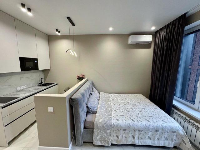 1-комн. квартира-студия от застройщика с предчистовой отделкой в ЖК "Северный Порт" на 25 этаже. Общая площадь: 28.8 кв.м., площадь гостиной 22.5 кв.м., из которых 7.8 кв.м. выделено под кухонную зону. Все окна выходят на одну сторону. В квартире один совмещенный санузел. Высота потолков 3.15 м. Квартира находится в корпусе 7.1. Дом монолитный, одноподъездный, высотой 34 этажа. На этаже 14 квартир. В подъезде 3 пассажирских и 3 грузовых лифта. Окончание строительства - 1 квартал 2028 года. Оформление сделки по договору долевого участия. В шаговой доступности от дома находятся станции метро (расстояние по прямой): "Беломорская" (1.1 км), "Планерная" (1.5 км), "Речной вокзал" (1.6 км), также недалеко от этого корпуса расположена станция метро "Ховрино". В проекте "Северный Порт" реализованы авторские решения девелопера LEGENDA, которые представлены уникальными фасадными решениями, коллекцией дизайнерских квартир, а также инновационным оснащением комплектацией TechnoBox - полностью технологически подготовленным пространством для любых современных сценариев жизни. В 1-ой очереди строительства проекта "Северный Порт" авторская комплектация TechnoBox представлена в корпусах 7.1 и 7.3 и включает в себя два направления: Технологически подготовленное пространство: - Smart Home Ready - стационарное и удаленное управление квартирой. - Air Design - всегда свежий воздух, никакого шума и пыли. - Мультизональное кондиционирование. - Мультисервисная сеть - единая сеть коммуникационных систем. Готовность к декорированию: - Шумоизоляция - комплексные меры для защиты от лишнего шума. - Подготовка стен - все стены подготовлены к отделке дизайнерскими материалами. - Выровненный пол - полы выровнены стяжкой из цементно-песчаной смеси, повышающей механическую прочность, и готовы к укладке покрытия. - Электрические сети - коммуникации расположены с учетом рекомендаций по расстановке мебели и техники. "Северный порт" от LEGENDA входит в крупномасштабный проект комплексного развития территории Северного речного порта, реализуемый правительством Москвы, и представляет собой микс жилой, коммерческой, социальной и общественной инфраструктуры. Автором концепции обустройства территории выступило архитектурное бюро Сергея Скуратова. Созданный дизайн-код лёг в основу проекта, разработанного LEGENDA совместно с архитектурным бюро KAMEN Architects. Город ставит новый акцент, создавая мощный центр притяжения в экологичной локации у Северного речного вокзала. Близость к воде, парковым зонам и футуристичный архитектурный образ определяют потенциал развития проекта на несколько десятилетий вперед. Важной частью проекта станет строительство самой протяженной благоустроенной набережной, которая соединится с парком Северного речного вокзала и создаст уникальное прогулочное пространство длиной 3,2 км, вдоль которого будет организован современный торговый променад. В основе концепции благоустройства лежит авторская модель проектирования двор