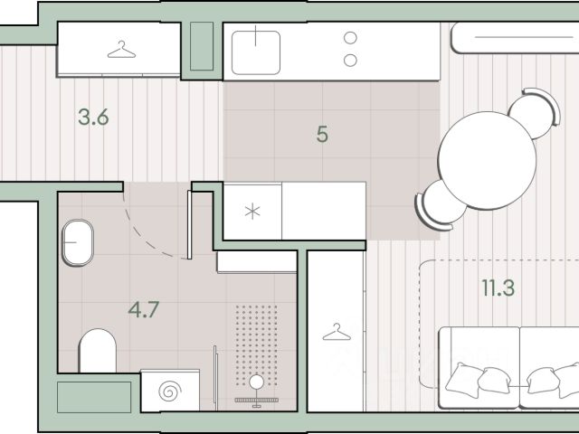 О квартире Продаётся студия общей площадью 24.6 кв.м. с отделкой white box. Квартира расположена на 12 этаже корпуса 5.2 в жилом комплексе бизнес-класса "Среда на Лобачевского" в пешей доступности от метро "Аминьевская". О жилом комплексе "Среда на Лобачевского" полностью соответствует критериям современного жилого пространства. Взяв за основу рациональный подход, мы гармонично соединили дизайн, актуальные тренды и функциональность. Продуманный современный экстерьер и функциональные планировки внутри, приватные пространства и разнообразные досуговые зоны для каждого члена семьи — все это "Среда на Лобачевского". Инфраструктура Район отлично развит и наполнен жизнью, здесь уже есть вся необходимая инфраструктура — детские сады, школы, медучреждения, торговые центры, благоустроены парки для прогулок и отдыха, удобен и легкодоступен городской транспорт. Рядом расположены учебные корпуса крупных университетов — МГУ, МГИМО и РАНХиГС. Школы и детские сады в районе занимают высокие позиции в городских рейтингах, поэтому вам не придется беспокоиться о качестве образования детей. Как и об отдыхе: поблизости расположены живописные пруды, реки и парки. Это Парк Олимпийской деревни, Парк имени 50-летия Октября, Мещерский парк и Очаковские пруды. Теперь поставить галочки в еженедельном чек-листе "спорт-прогулки-встречи с друзьями" можно, не покидая любимый район. Особенности Особое внимание в проекте уделяется созданию функциональных пространств не только внутри дома, но и за его пределами. В ландшафтном парке "Среды на Лобачевского" расположены крытые зоны для спокойного времяпровождения, места для активного отдыха и спорта, коворкинг, соседский комьюнити-центр, водные объекты. —Ландшафтный парк во дворе. —Водный сад с зонами отдыха. —Зоны коворкинга. —Дизайнерские гранд-лобби. —Бесключевой доступ. —Подземный паркинг.
