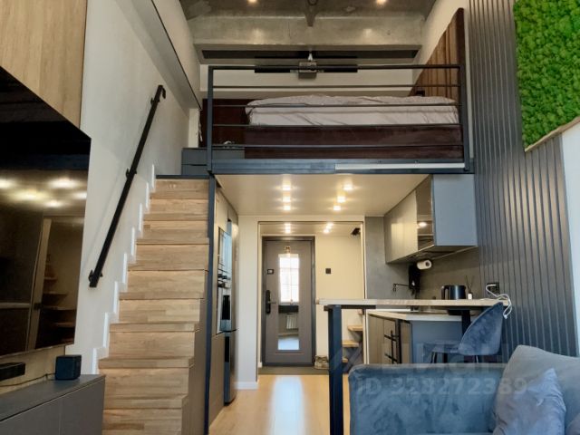Вдохновлена двухуровневыми квартирами Парижа и Амстердама, зонирование продумано, кухня/гостиная/спальня/гардеробная/много хранения