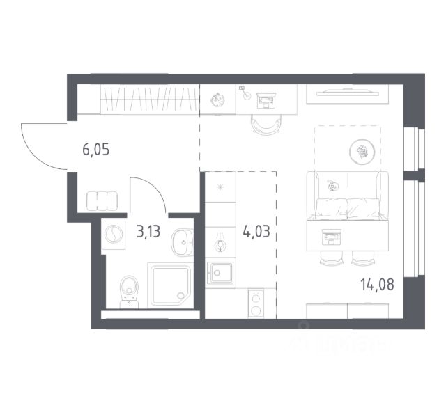 Продаётся студия 643, площадью 26,53 м², на 25 этаже в ЖК "Пехра" корпус 8. Стоимость — от 6419842 руб. Квартира с отделкой, планировка односторонняя, окна во двор.