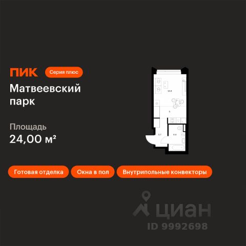 Прямая продажа от застройщика. Продаётся студия общей площадью 20.70 м² с предчистовой отделкой в ЖК VEER на 15-м этаже 46 этажного дома. Жилой комплекс бизнес-класса VEER от компании MR — это футуристичный мультиквартал, расположенный в престижной локации на западе Москвы. Благодаря переменной высоте башен — двух 22-этажных, 46-этажной и двух 59-этажных — возникает динамичность в силуэте комплекса, а его яркий образ вносит разноплановость в архитектурный пейзаж района. Расположение и транспортная доступность: • VEER удобно расположен в непосредственной близости от Кутузовского проспекта, обеспечивая быстрый доступ к центральным районам Москвы • Комплекс находится непосредственно напротив самого большого природного заказника в Москве - парка "Долина реки Сетунь", а за семь минут можно доехать до памятника садово-паркового искусства, Троекуровского леса. • Всего в 15 минутах - центр города, самая престижная бизнес-школа управления России "Сколково", дом творчества "Переделкино". • 18 минут пешком до м. "Давыдково" • Открытие новых станций метро в шаговой доступности в будущем Инфраструктура: Разнообразить свой день резиденты VEER смогут также проводя больше времени на свежем воздухе. Двор разделен на 4 зоны разных эмоций и действий, которые пересечены и соединены веерными прогулочными маршрутами: • Спортивная площадка устроена в глубине "Кленовой рощи" • В "Чайном домике" будет создан навес с утеплением для отдыха в любую погоду • Площадки для детей воплотятся в "Волшебный лес" с цветами, зеркалами и световым дизайном • "Центральная площадь" устроена у водного оазиса живописного пруда. Компания MR предлагает своим клиентам специальные условия приобретения квартир в рамках программ ипотечного кредитования от банков-партнеров.