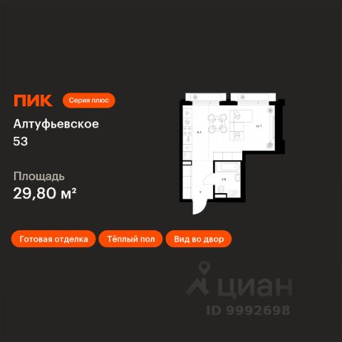 Смарт-студия для молодых специалистов или тех, кто ценит личное пространство и независимость. -Наслаждайтесь прекрасными видами и созерцайте закаты на балконе -Свободная линейная планировка, где гармонично зонирована кухня и спальня -Возможность установки дополнительной перегородки для разделения пространства на гостиную и спальную зону -Окна в пол в зоне балкона -В квартире предусмотрено смешанное остекление -Дополнительные окна в квартире наполнят пространство светом -Вместительная зона для хранения вещей в коридоре. Смарт-студия подойдет тем, кто ищет функциональное и доступное жилье. Жилой комплекс "Акценты" — это монолитный проект бизнес-лайт класса, расположенный в северной части Москвы, в районе Восточное Дегунино. Комплекс объединяет 19 жилых корпусов высотой от 7 до 30 этажей, возводимых на территории 11,7 гектара. В рамках проекта предусмотрены квартиры различной площади — от компактных студий до просторных трехкомнатных решений, с высотой потолков 2,85 м и вариантами отделки, включая чистовую отделку. Благодаря архитектуре бюро АПЕКС и панорамному остеклению, помещения наполняются естественным светом. Удачное расположение рядом с метро "Лианозово" и МЦД делает комплекс удобным как для жизни, так и для инвестиций. Комфорт и безопасность Каждый корпус оборудован современными лифтами с выходом на все этажи, включая подземный паркинг. Входные группы спроектированы с учетом принципов безбарьерной среды: предусмотрены места для колясок и велосипедов. В лобби вас будут ждать уютное пространство с зоной для кофе, стеллажами для обмена книгами и мягкой зоной ожидания такси или курьера. Для автомобилистов организован двухуровневый подземный паркинг на 494 машиномест, с системой распознавания номеров и станцией подкачки шин. Вся территория комплекса закрыта и охраняется: контроль доступа и система видеонаблюдения обеспечивают безопасность жителей. Отдельное внимание уделено цифровой инфраструктуре — проект поддерживает современные "умные" сервисы для комфортного управления бытом. Архитектура Архитектурная концепция ЖК разработана бюро АПЕКС: элегантные фасады с натуральными фактурами, панорамное остекление и переменная этажность формируют выразительный и современный облик. Дизайн каждой секции уникален и дополнен эргономичными планировочными решениями. Ступенчатая структура застройки обеспечивает приватность и оптимальную инсоляцию. Благоустройство На территории комплекса реализована концепция "двор без машин". Центральное пространство оформлено как закрытый двор-сад с пешеходными аллеями, зонами отдыха, террасами и вечерней подсветкой. Здесь находятся детские и спортивные площадки, спортивные площадки, коворкинги на открытом воздухе и зоны отдыха. Также предусмотрены зоны для выгула собак с удобствами для гигиены питомцев. Окружение и досуг ЖК "Акценты" расположен в окружении развитой городской инфраструктуры. В шаговой доступности находятся школы, супермаркеты, спортивные объекты и остановки общественного транспорта. До