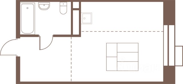 Общая площадь квартиры вместе с лоджией составляет 35 кв. м, жилое пространство — 18 кв. м, кухня — 12 кв. м с выходом на просторную широкую лоджию.