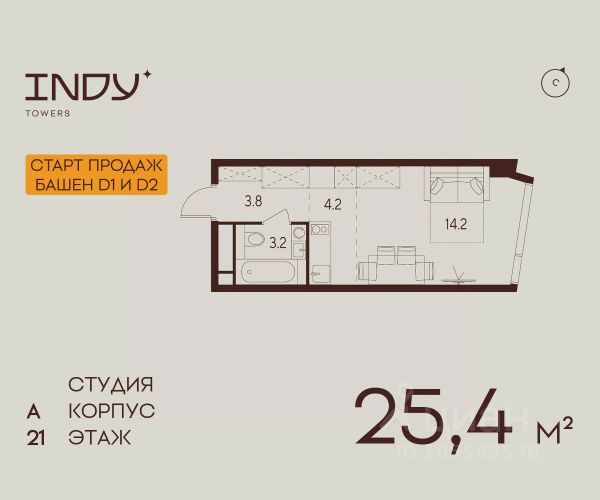 Продажа от застройщика. Продается просторная студия на 24 этаже жилого комплекса Indy Towers. Вид из окон: во двор. Срок сдачи: 4 кв. 2026 г. Отделка: Квартиры продаются с отделкой WhiteBox. - Вам не придется заниматься черновыми работами. - Возможность реализовать любой дизайн-проект. Расположение: Комплекс расположен в Хорошевском районе Москвы, на улице Куусенина, в окружении почти 150 гектаров парков для прогулок и активного отдыха. Помимо этого, рядом с комплексом есть: - Детская международная академия тенниса - Ледовый спортивный комплекс ЦСКА - Футбольный стадион "ВЭБ-Арена" - Крупнейший в Европе торовый центр "Авиапарк" - Богатый выбор государственных и частных школ - 8 парков, окружающих комплекс Транспортная доступность: - 3 минут до метро Зорге - 2 минуты пешком до парка Березовая роща - 10 минут на машине до ТТК - 8 минут на машине до ТРЦ Авиапарк Внутренняя инфраструктура Indy Towers: - Кафе и продуктовые магазины - Тайский SPA - Фитнес зал - Комьюнити-зона - Детский клуб Аквилон KIDS - Детский сад Преимущества: - Технология энергоэффективности Termo-S, снижающая теплопотерю домов и позволяющую экономить на электроснабжении - Soundstop - технология дополнительной шумоизоляции на 39 дБ в квартирах с WhiteBox и чистовой отделкой - Система умного дома inHome 3.0 позволит контролировать коммунальные расходы, оплачивать счета и пользоваться услугами, не выходя из умного дома