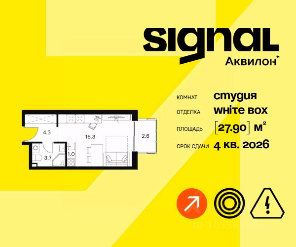 Продажа от застройщика. Продается уютная студия на 12 этаже 23-этажного современного апарт-комплекса Signal. Срок сдачи: 4 кв. 2026 г. Отделка: Апартаменты передаются в предчистовой отделке white box. Возможен заказ чистовой отделки. Мы выполним все инженерные и черновые отделочные работы, оставив вам самое приятное - создание индивидуального интерьера и неповторимого уюта. А если отпраздновать новоселье хочется как можно скорее, вы сможете заказать чистовую отделку в одном из двух цветовых вариантов: Beigestone или Greystone. Вам останется только завезти мебель и начать наслаждаться жизнью в SIGNAL. Расположение: ЖК Signal расположен на перекрестке столичных маршрутов. По Сигнальному проезду легко выехать на Алтуфьевское шоссе, СВХ и проспект Мира. Транспортная доступность: - 3 минуты пешком до станции Владыкино - 15 минут на автомобиле до ТТК - Ботанический сад в 10 минутах ходьбы Внутренняя инфраструктура Signal: - Фитнес-центр на первом этаже - Игровая площадка и приватном дворе - Коворкинг и уединенные зоны для работы - Торговая галерея Преимущества: - SoundStop - Система защиты от шума, дополнительная шумоизоляция - Система умного дома InHome 3.0 - управление домом нажатием нескольких кнопок - Система Termo-S, позволяющая сэкономить на оплате теплоснабжения - Фитнес-зал позовлит поддерживать себя в форме - Лаунж-зоны, где можно расслабиться - Лобби-бар с большим выбором напитков и закусок - Гостиничный сервис и консьерж reception 24/7 для решения бытовых задач - Апартаменты обслуживает профессиональная управляющая компания - Арт-объекты во дворах для стильного контента Signal - это дом, - чья молодость духа и бодрый настрой заряжают всех, независимо от возраста - который задает абициозную планку с самого начала карьеры - где живут интересные события и встречаются хорошие люди Купить квартиру-студию с евроремонтом рядом с метро Петровско-Разумовская.